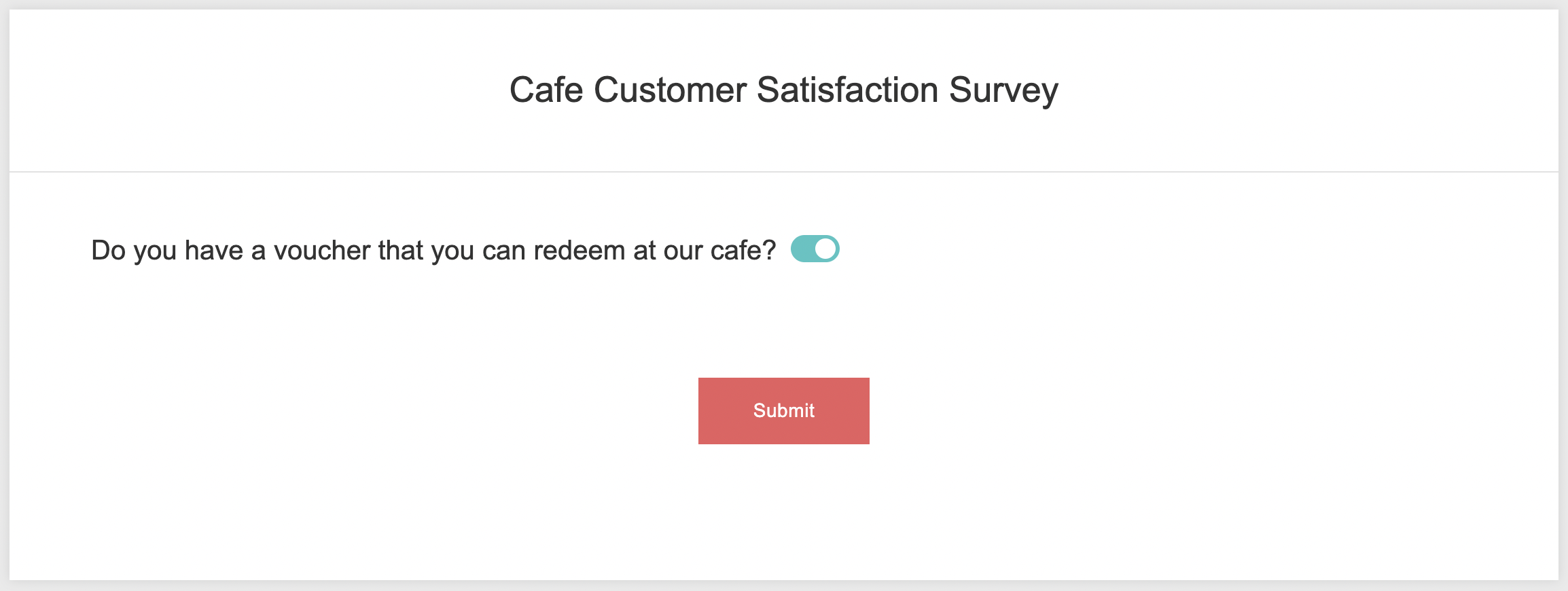 In the following example, a boolean question can be used instead of a multiple choice question to find out if your customers have vouchers that can be redeemed at your cafe.