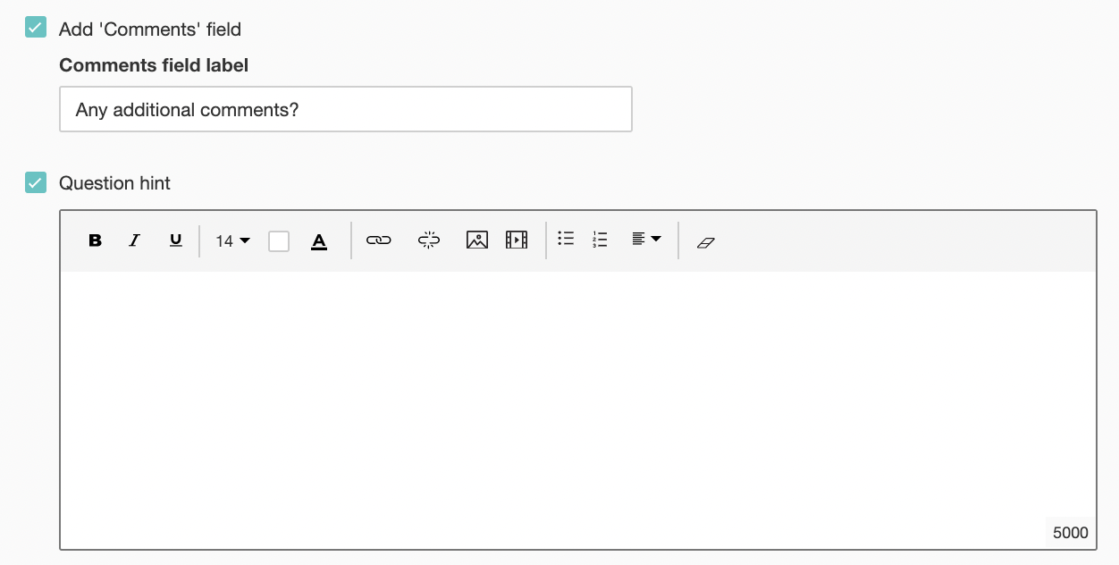 • Question hint is used to add hints to your question and help your respondents get a clear idea of what your questions are all about. This feature is optional and is available only for certain types of questions.