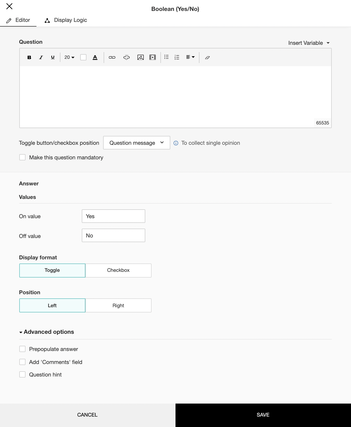 4. Select either Toggle or Checkbox in the Display format section to set the display format for your answer choices.