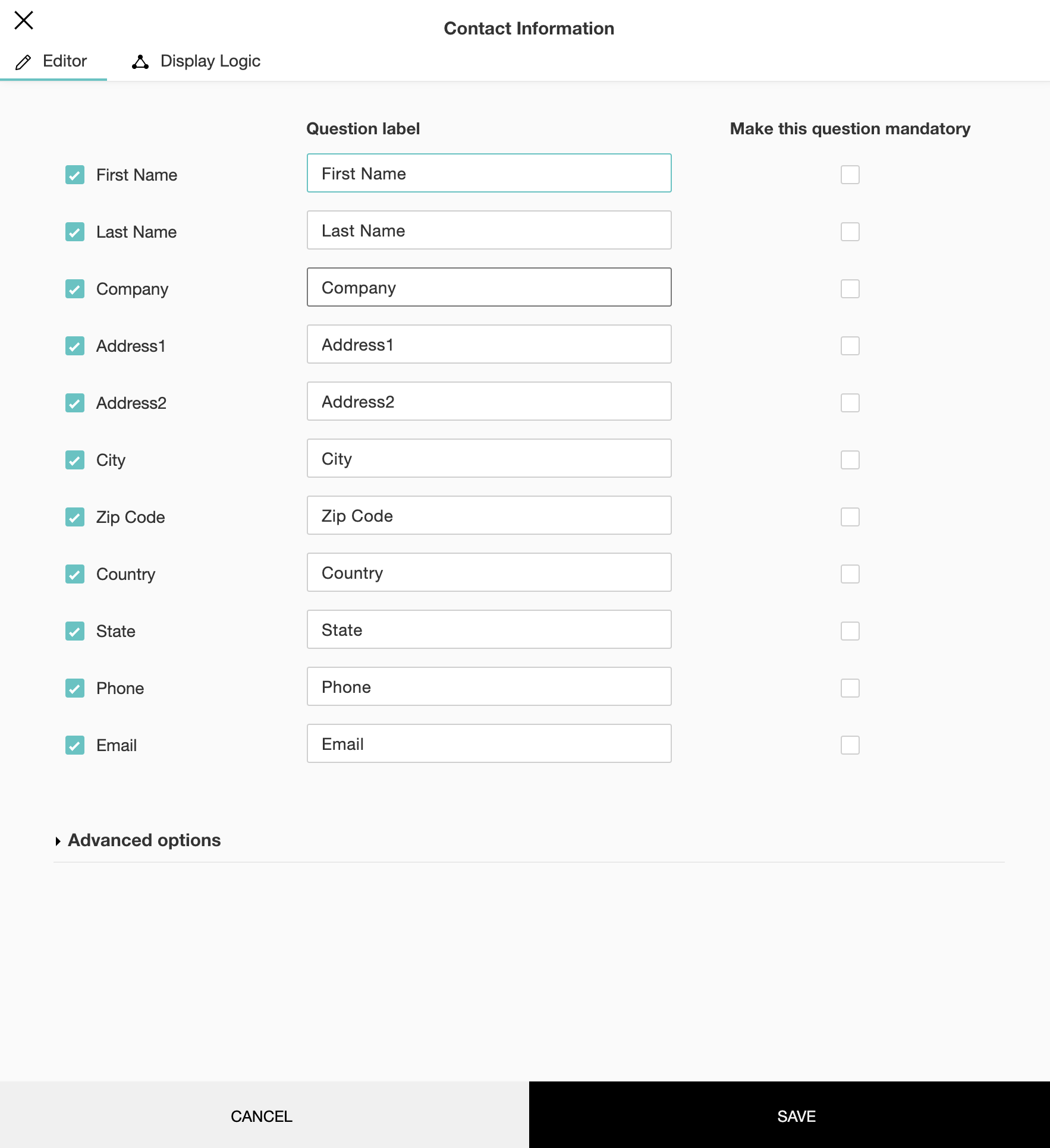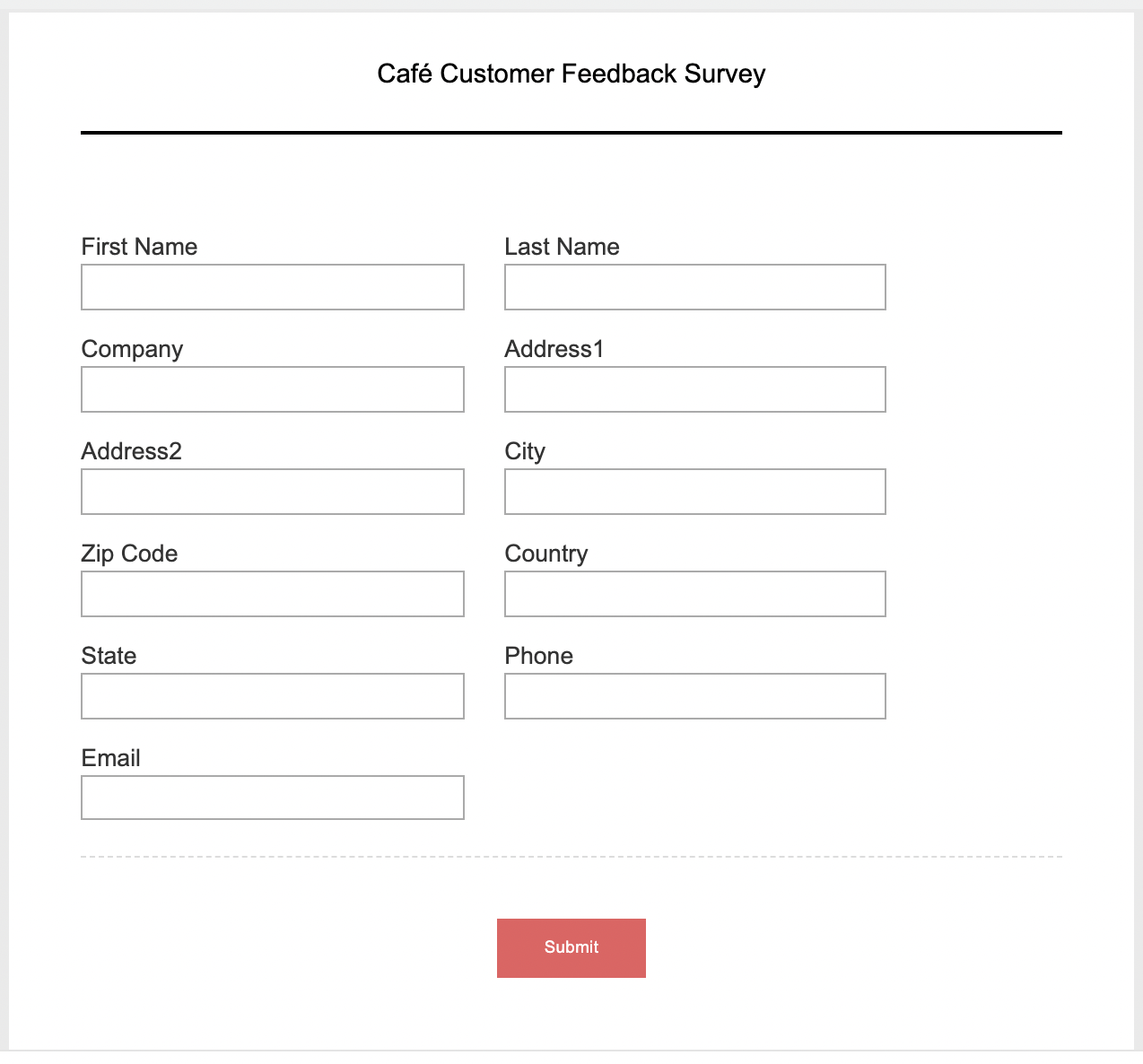 The Contact Information question type can be used to collect the respondent's contact information through a single question. This also reduces the chaos of using a lot of Short Answer questions.