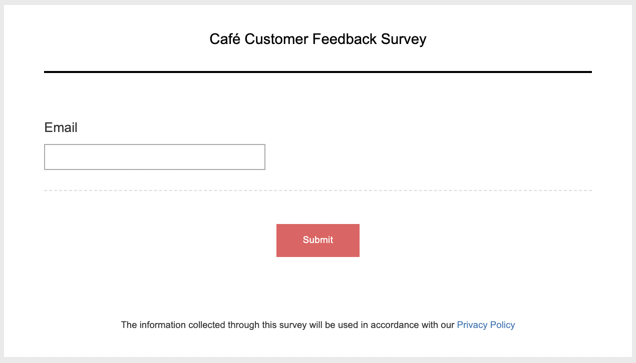 For example, if you'd like to collect the email addresses of your customers to send them promotional offers, newsletters, or occasional surveys, you could add an email question to your survey.