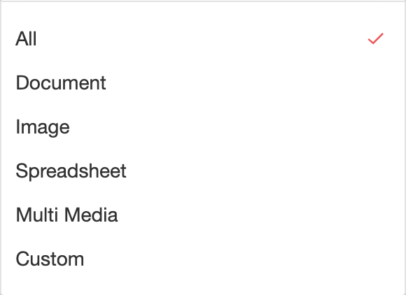 5. To upload custom file types, select Custom. Next, enter the required file extensions separated by commas.