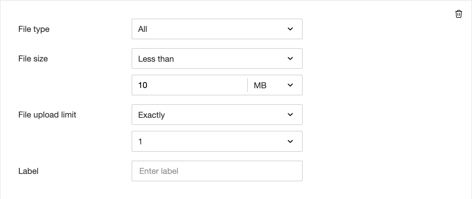5. To add a new answer field, click the Add field button. You can configure separate validations for various file types in each field.