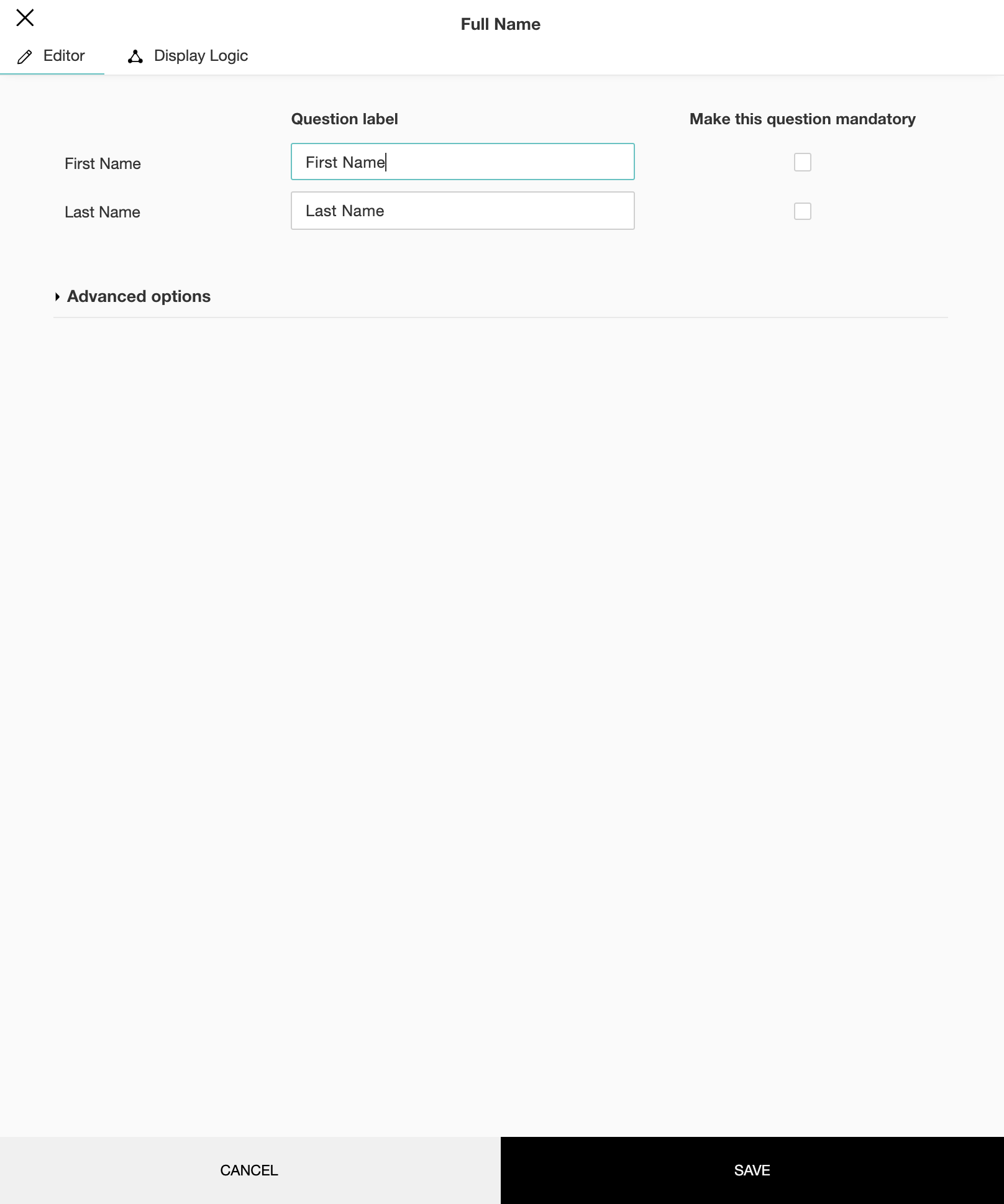 2. If you want to rename the labels, type in the new labels in the First Name and Last Name Question label boxes respectively.