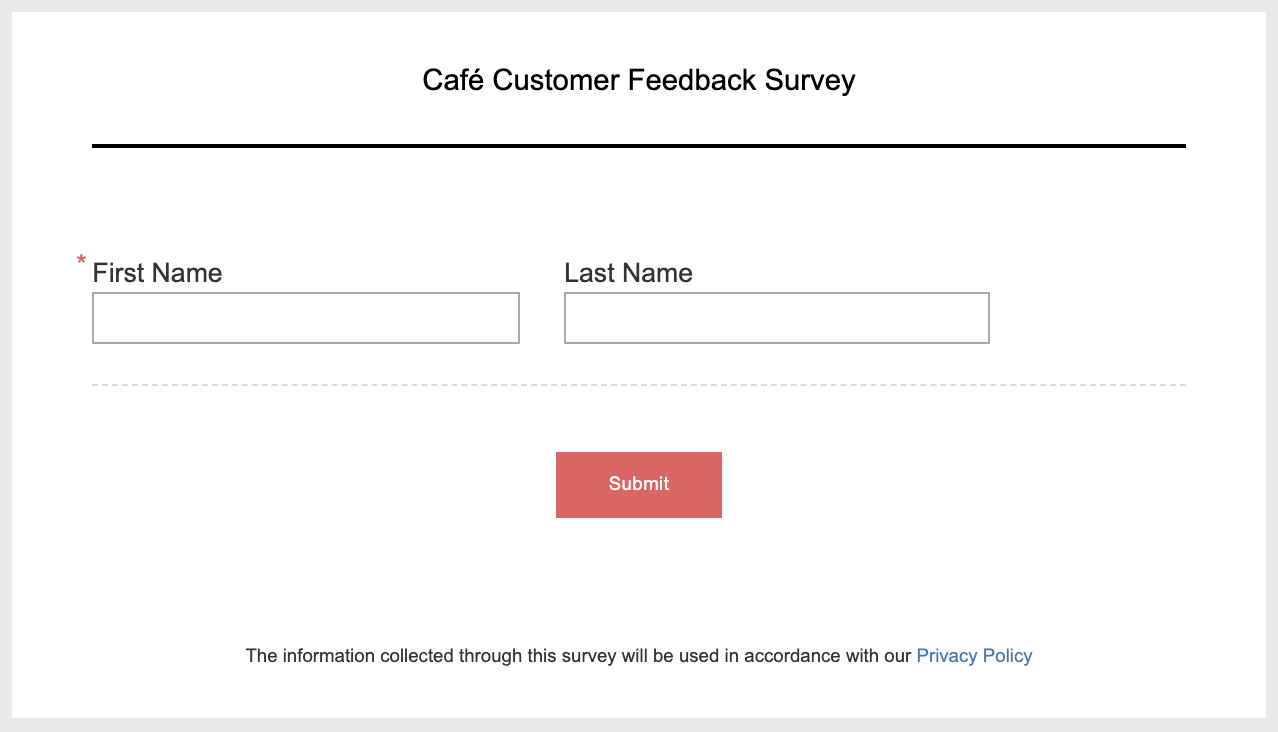 For example, when you're conducting a survey to collect customer feedback in your cafe, you'd require the names of your customers to address their queries and suggestions personally.