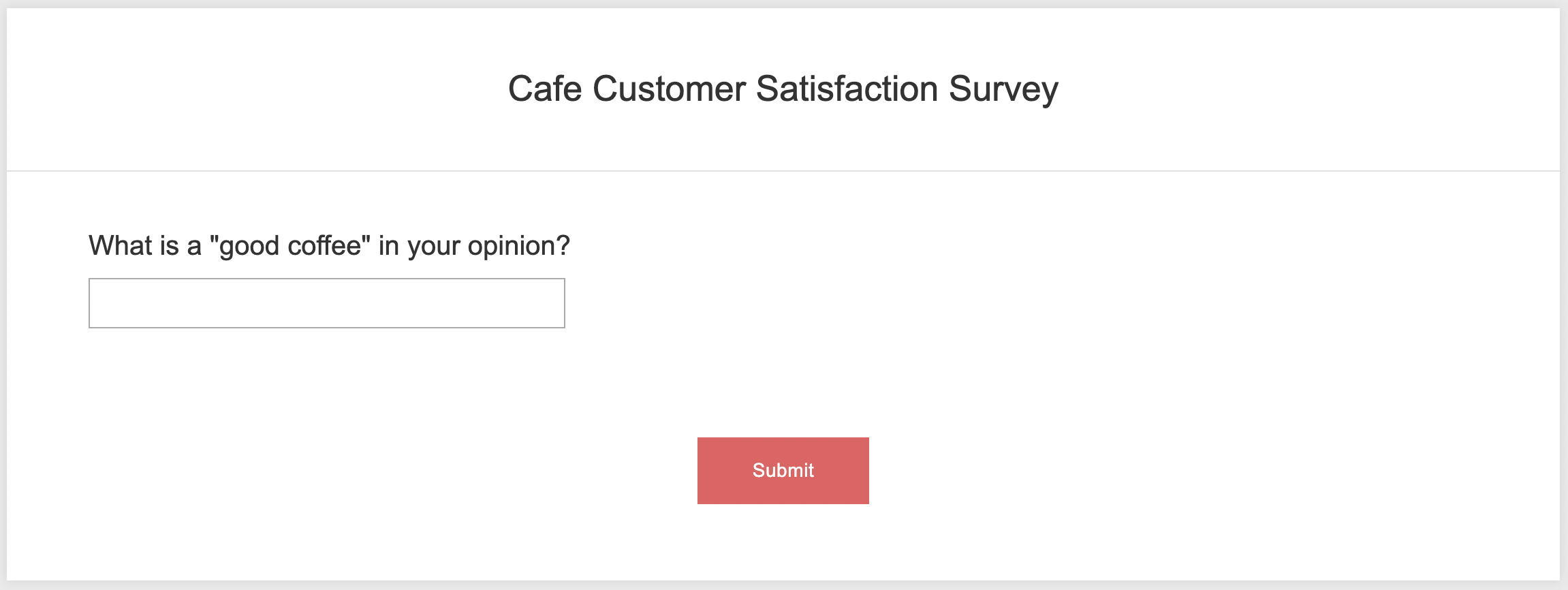 For example, a simple question as to what your customers think about a "good coffee" wouldn't need lengthy write-ups. It could be an emotion or a memory that they could explain in a word or two. A short answer question best serves the purpose.