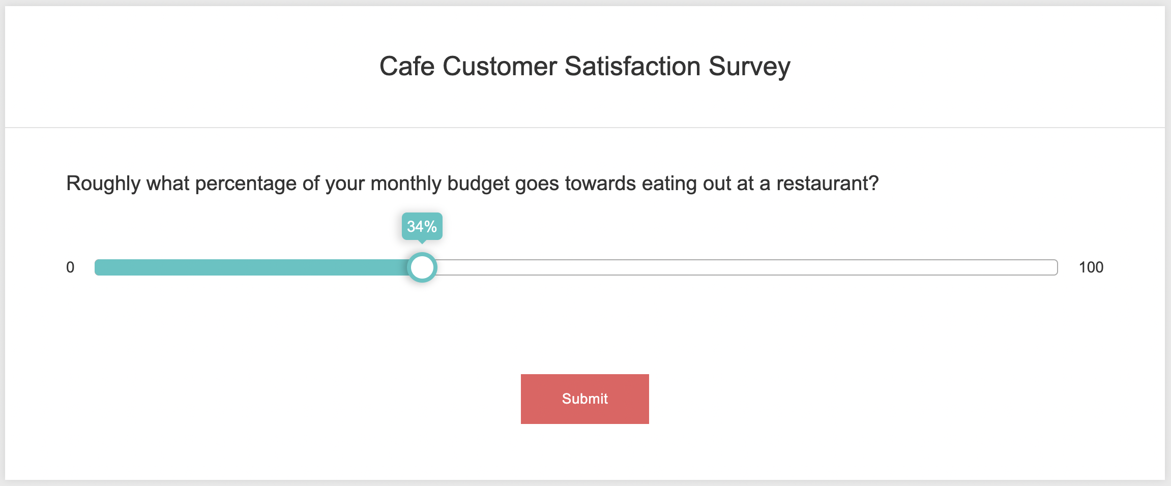 In the following example, a slider helps your customers mark a more accurate value than a regular multiple-choice question.