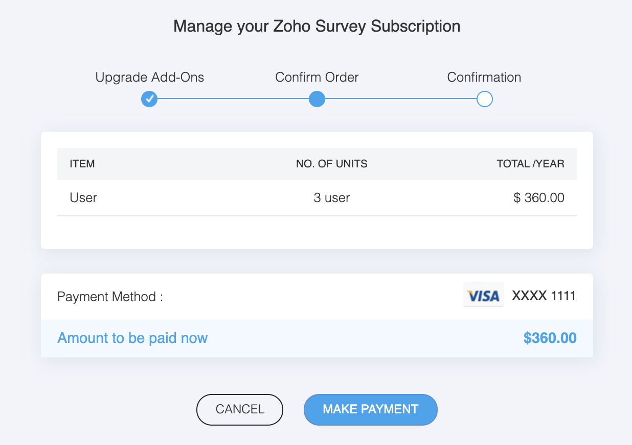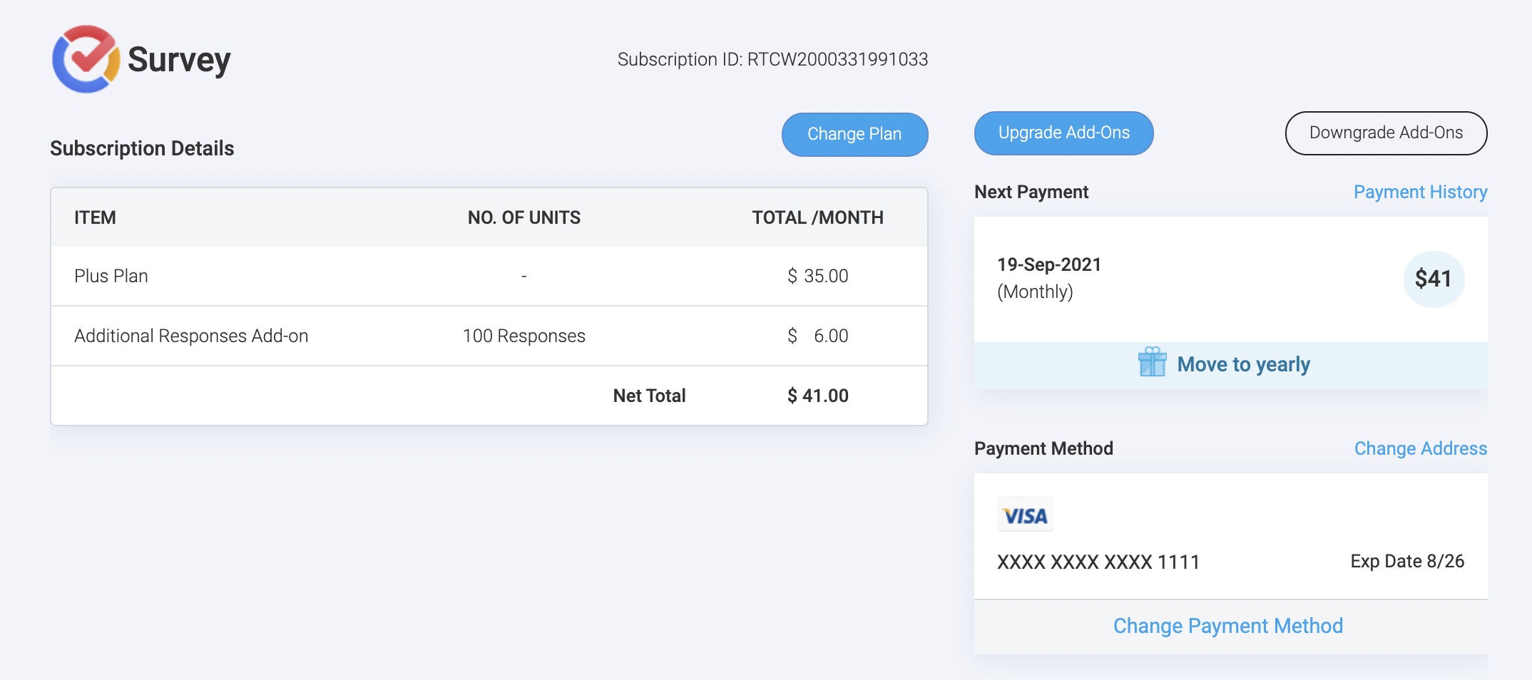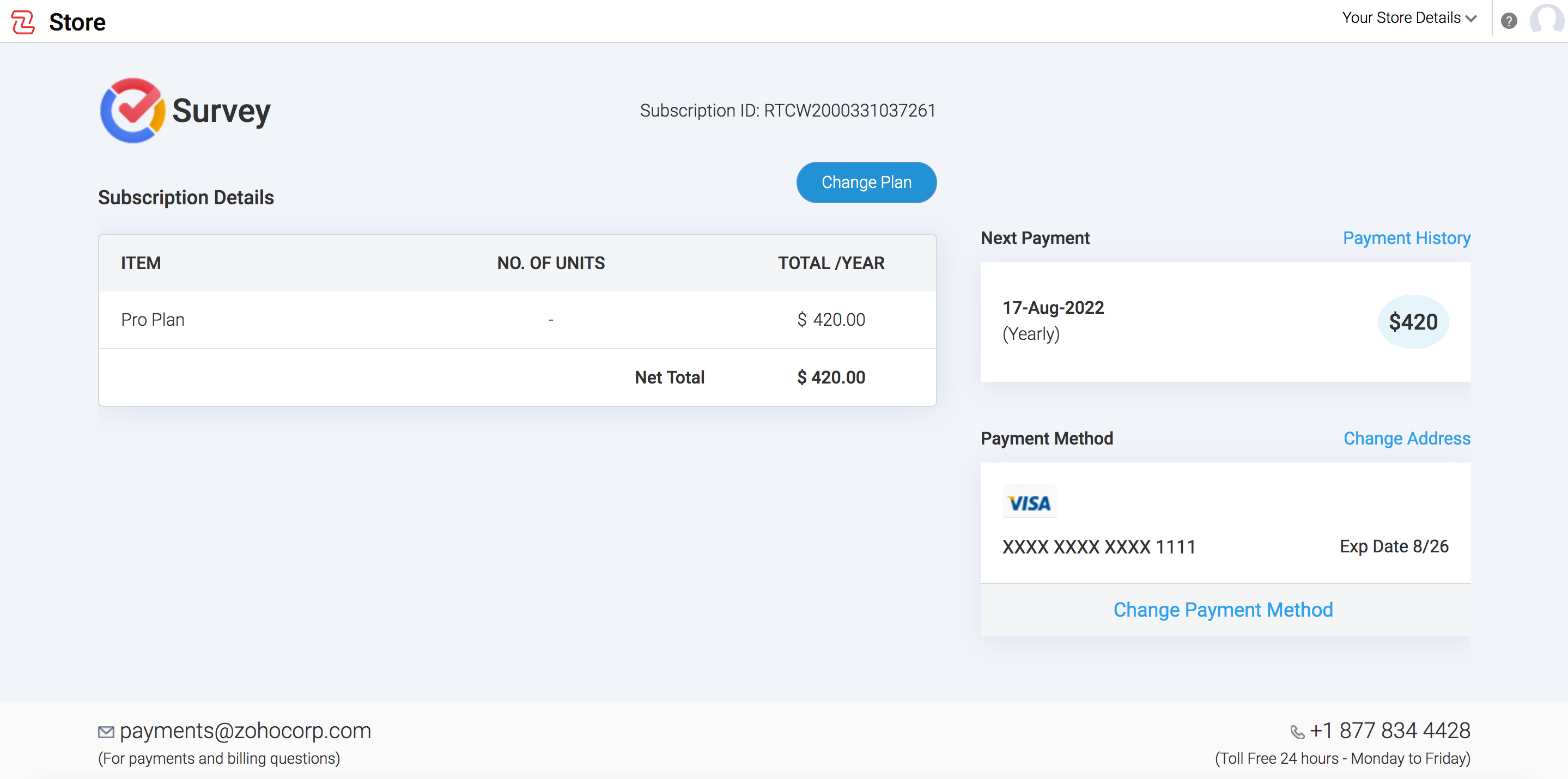 You can click View Subscriptions on the same page to view your current active subscription. You can also add email recipients for any payment-related updates by clicking Email Recipients and then Add Recipient.