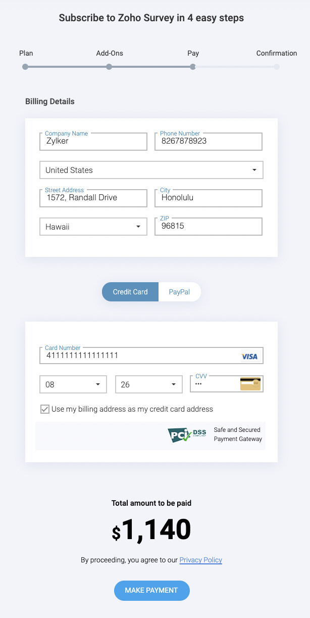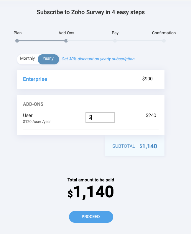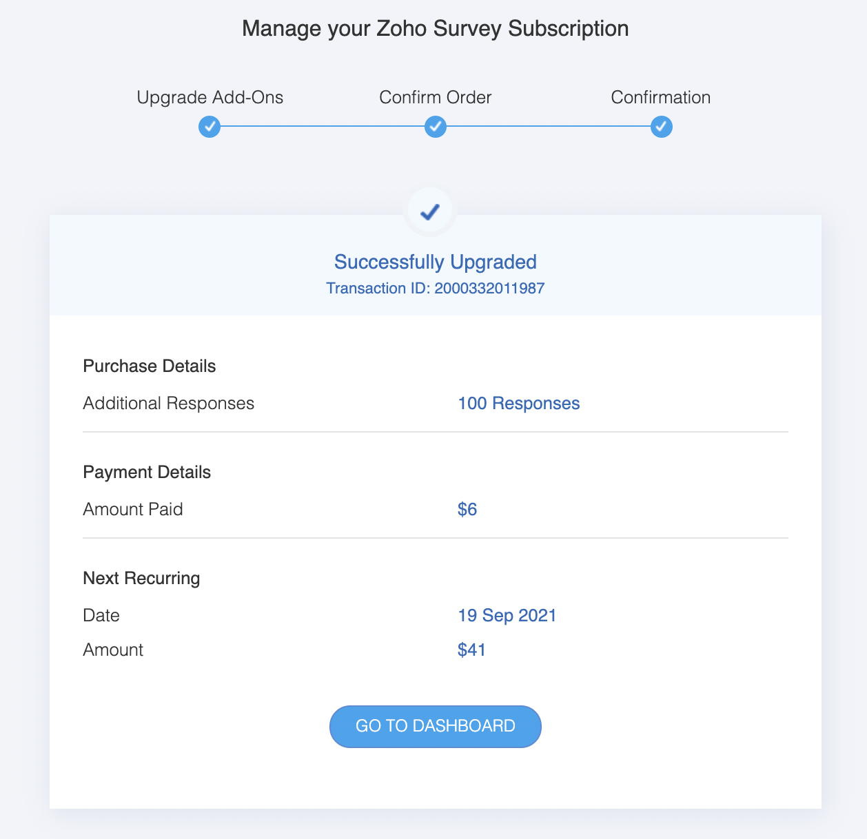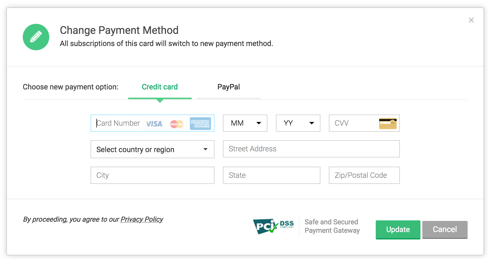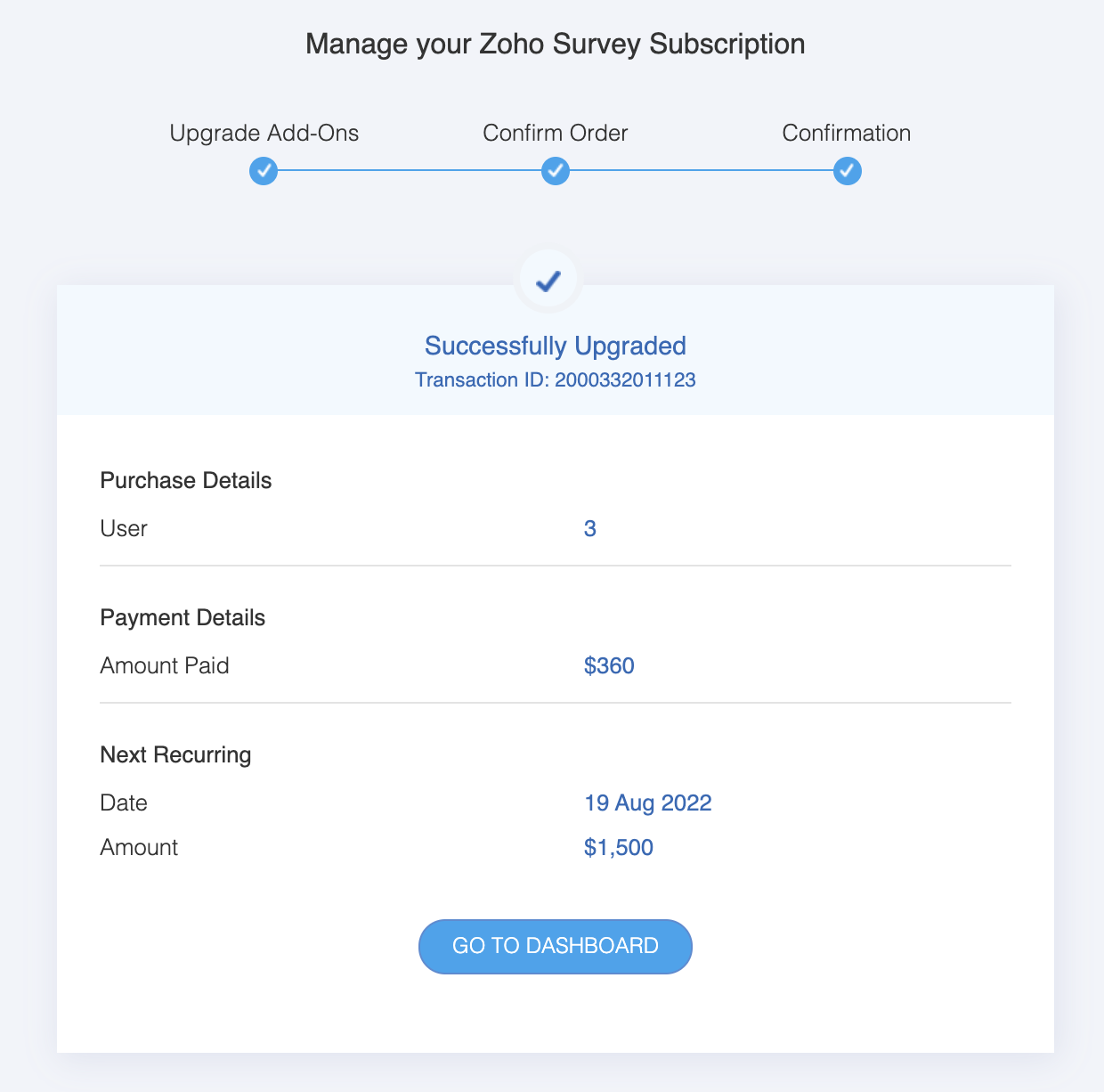 You can click View Subscriptions on the same page to view your current active subscription. You can also add email recipients for any payment-related updates by clicking Email Recipients and then Add Recipient.