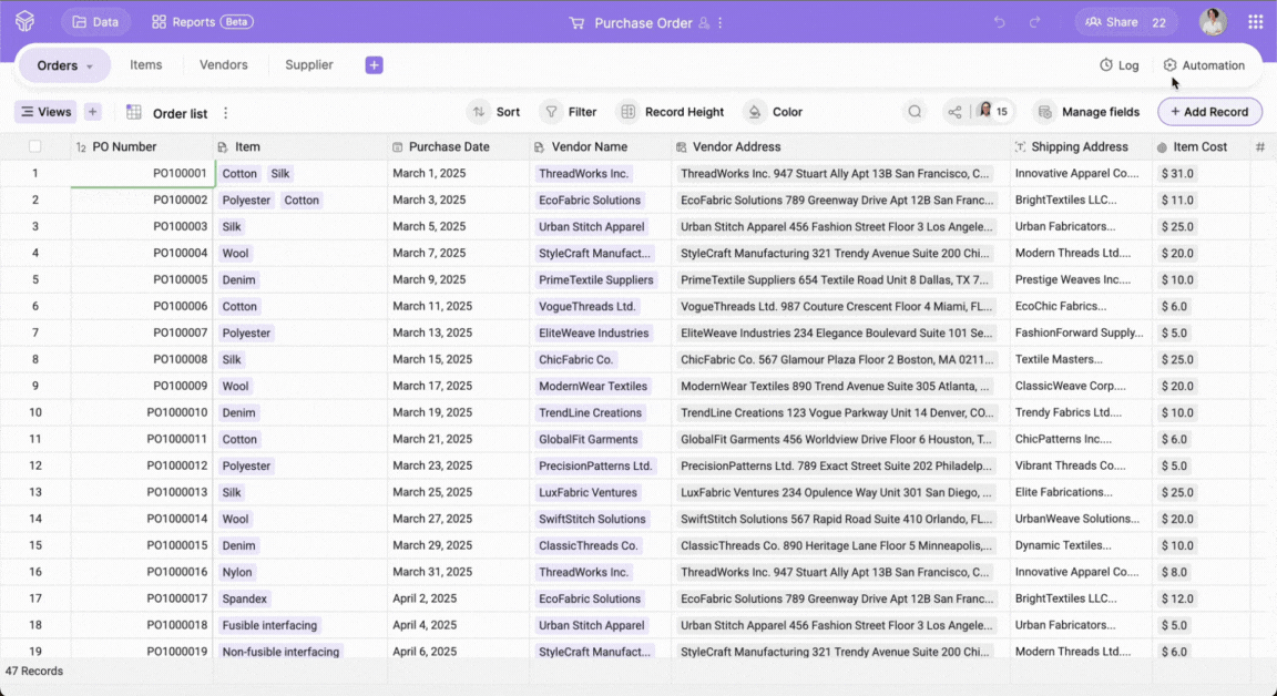 Now, click + Add Action and select Send Email. Enter the email address, a subject line, and a custom message. You can also include fields from the table.