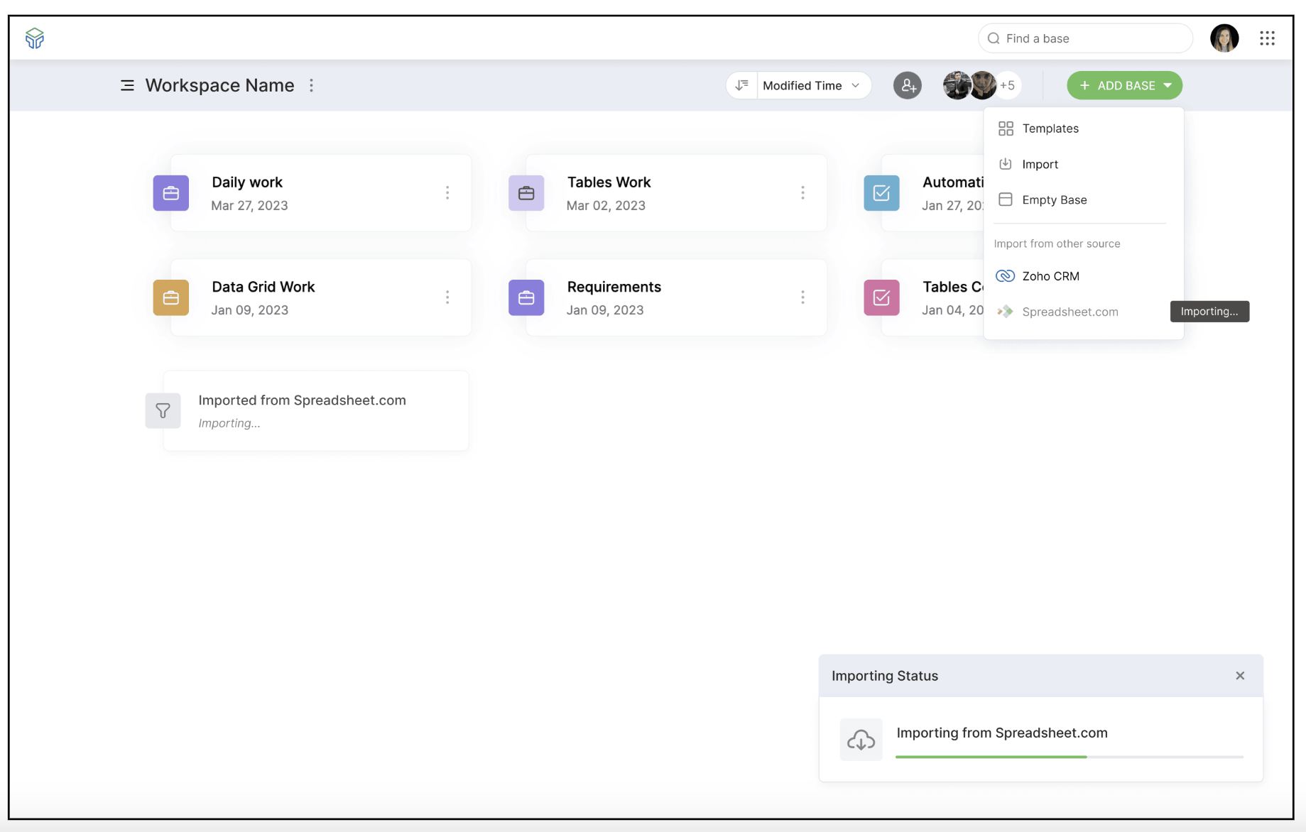 With Zoho Tables, importing data from your Spreadsheet.com account becomes seamless and simple. You can streamline your workflow with a simplified migration process and pick up your work from right where you left off.
