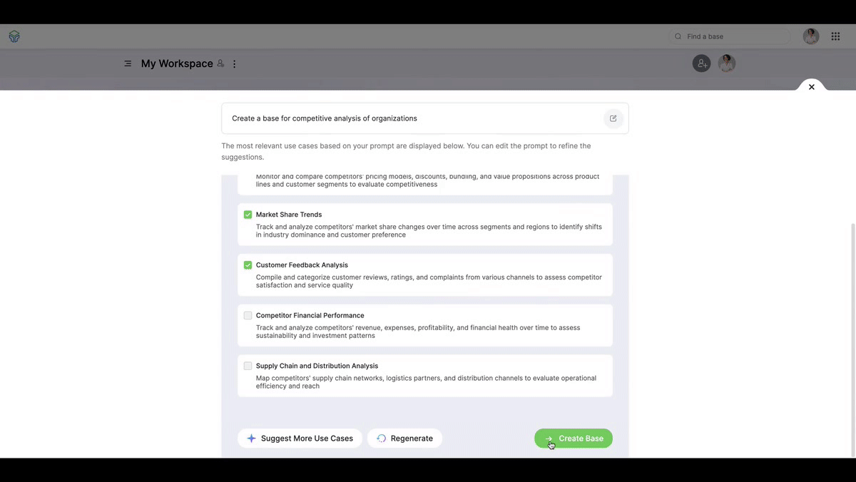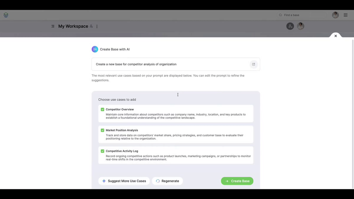 Once you've chosen your use cases, click Create Base, and your base will be created based on the use cases you've chosen.
