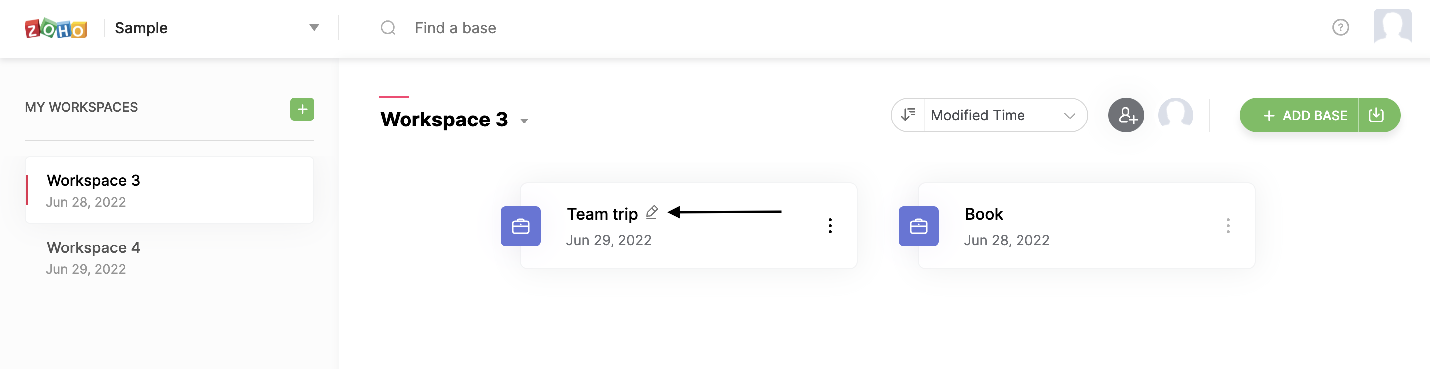1. Click the pencil icon that appears when you hover your mouse over the base name.