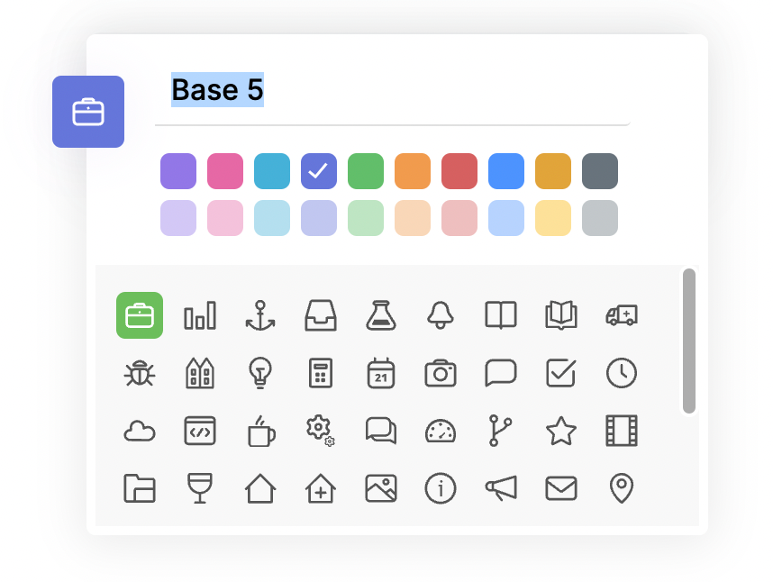 2. Rename the base as you prefer and set an appropriate icon & theme that is suitable for your data.