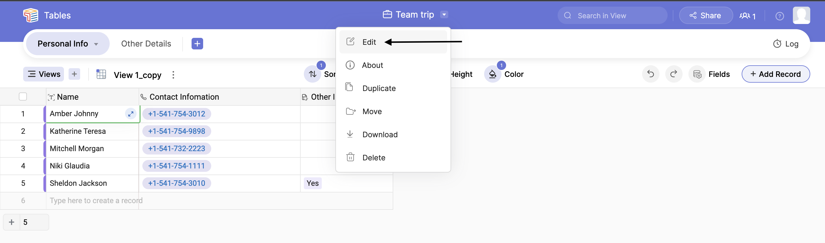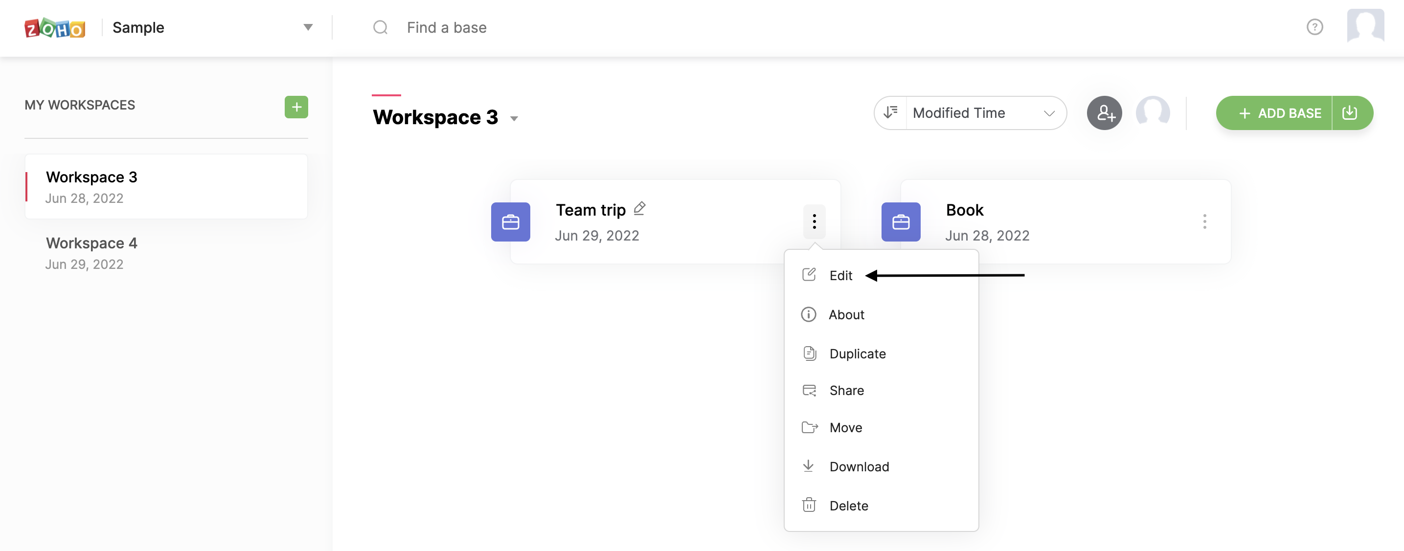 1. Go to the respective base. Click the three dots (More Options) and select the Edit option.