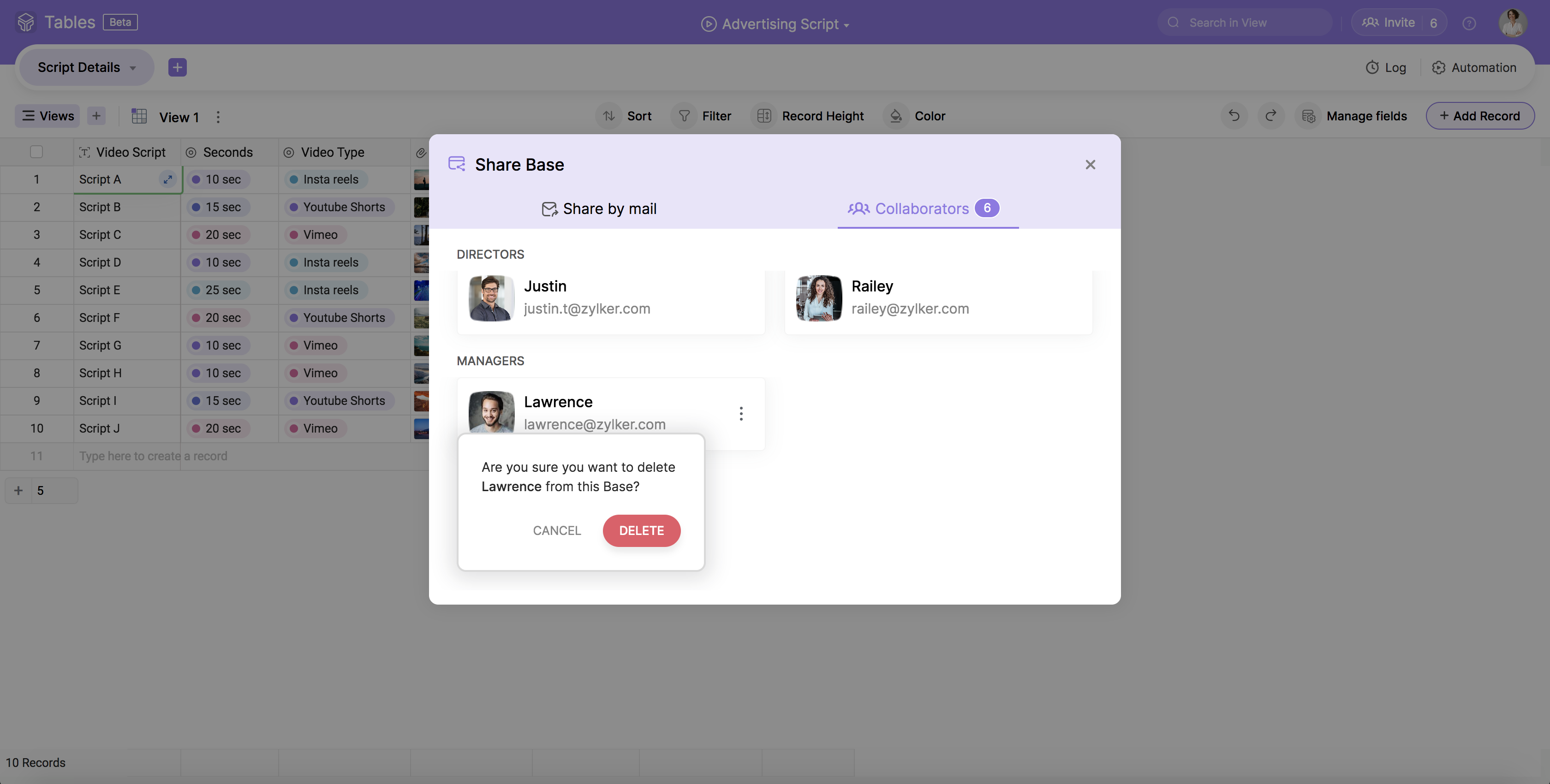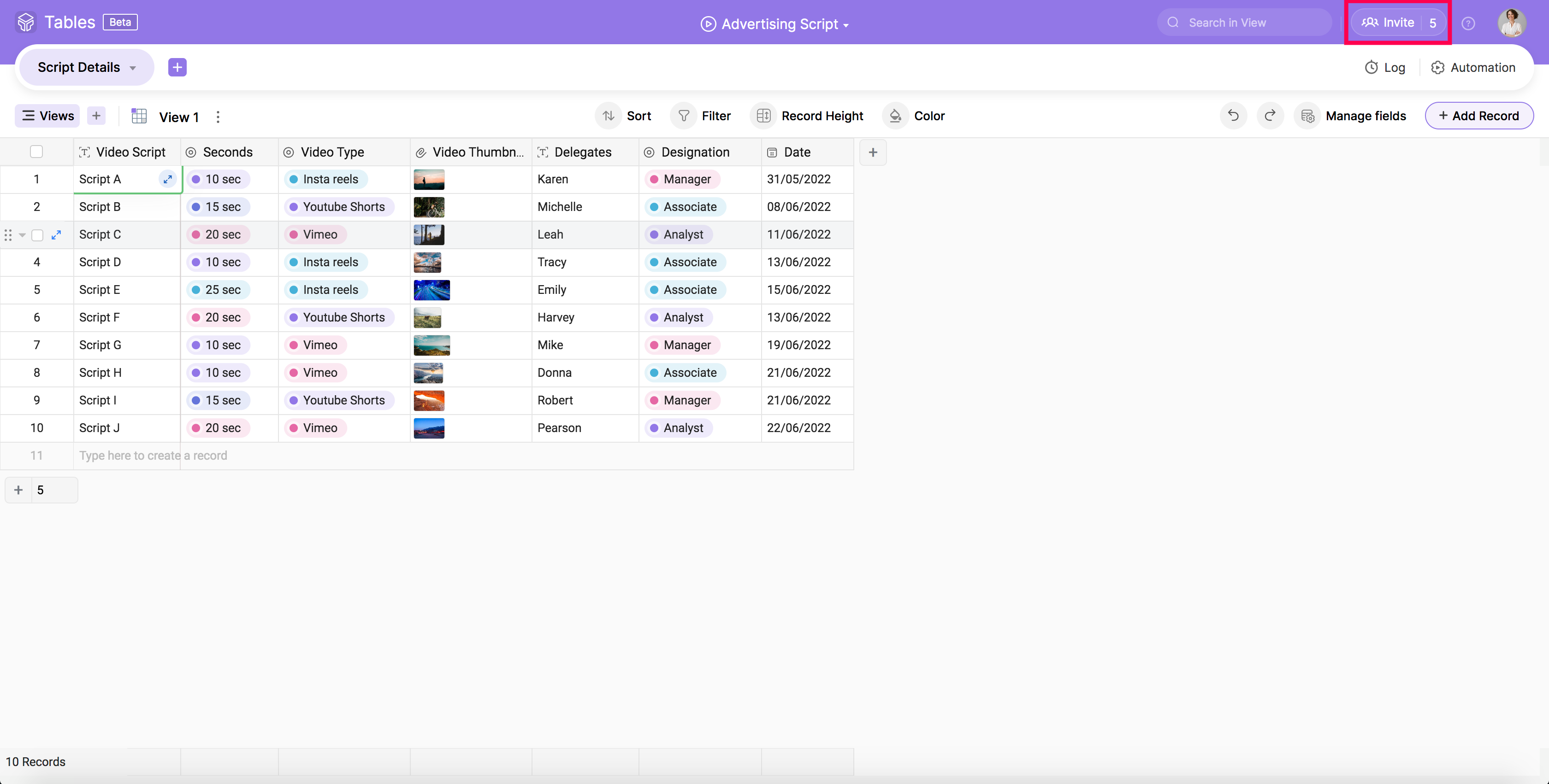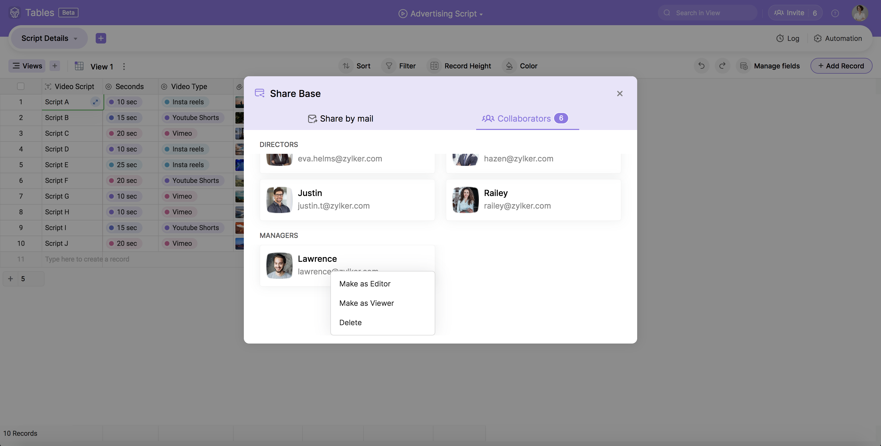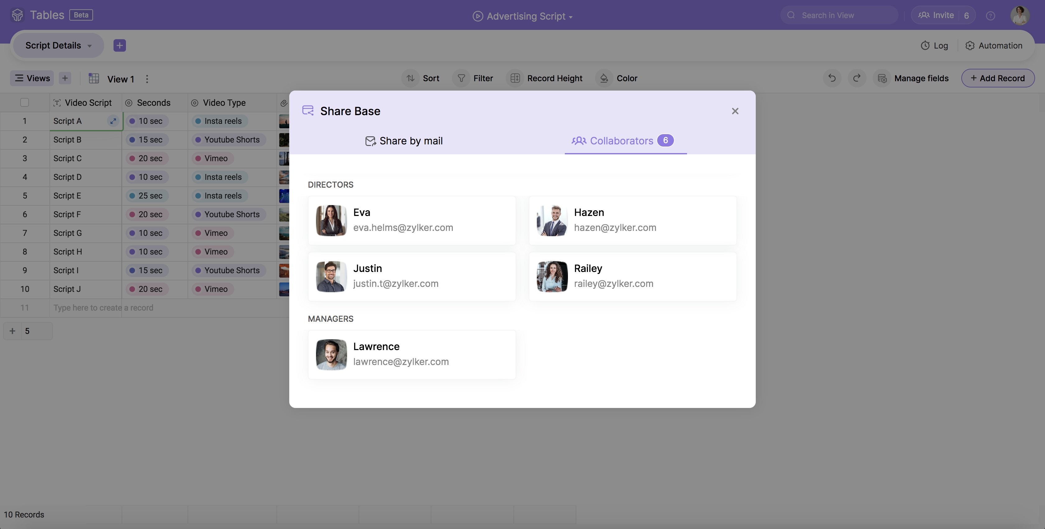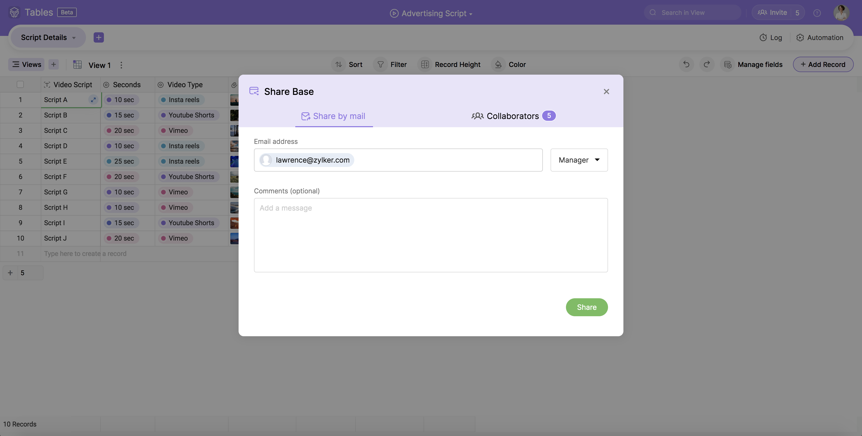 Open a Base, and click on the Invite icon from the right end of the top bar.