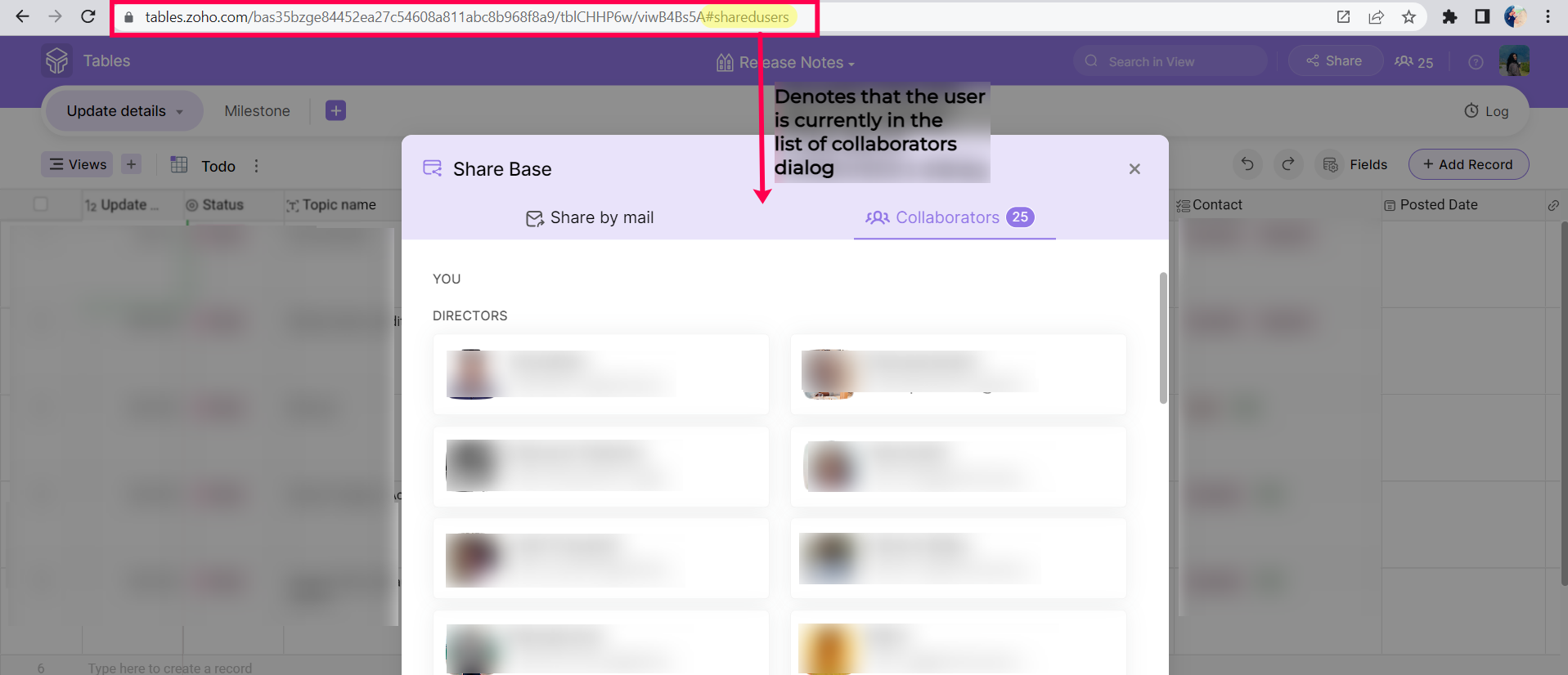 It's easy to take your collaborators directly to a specific section of the Zoho Tables application.