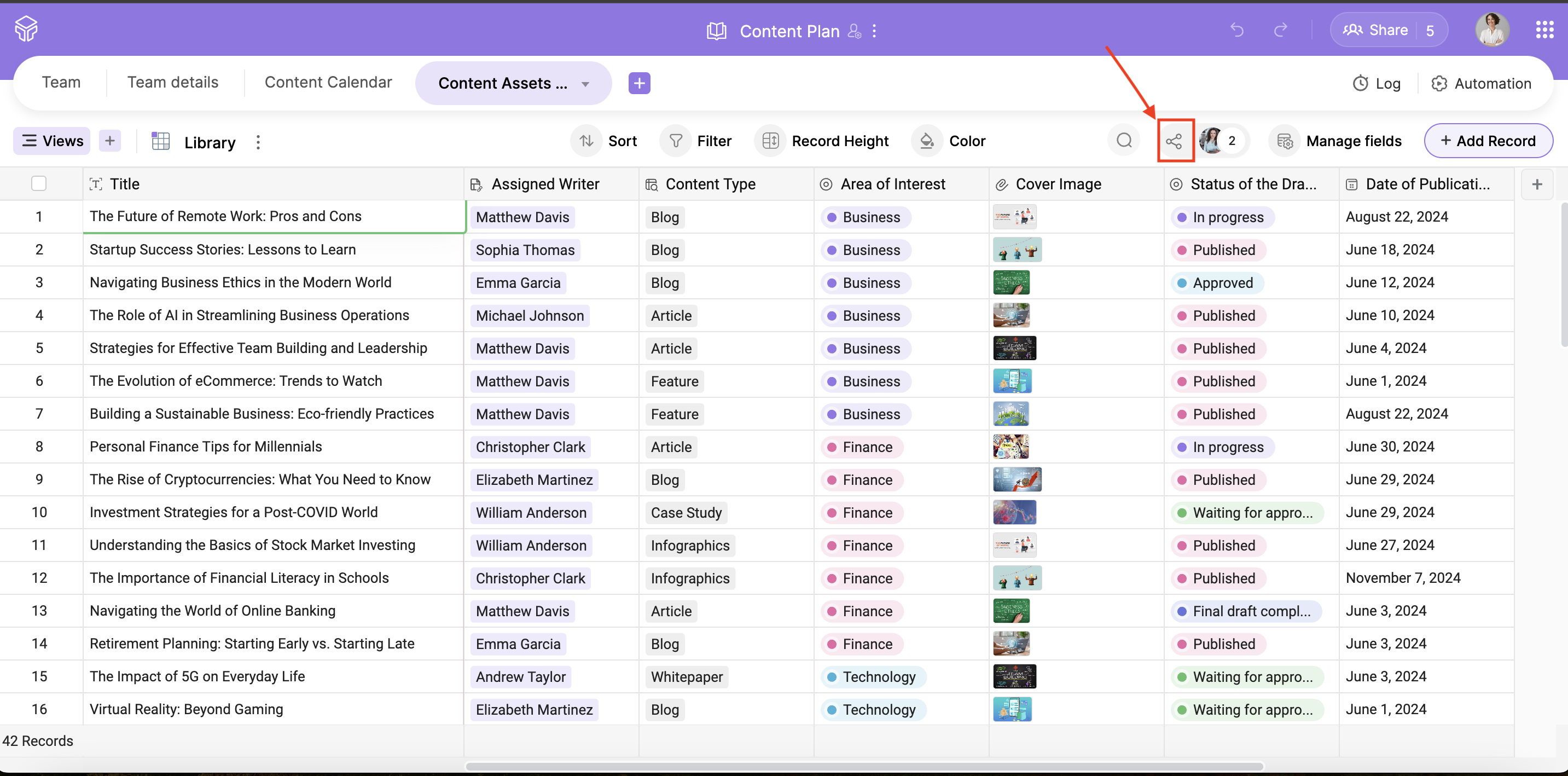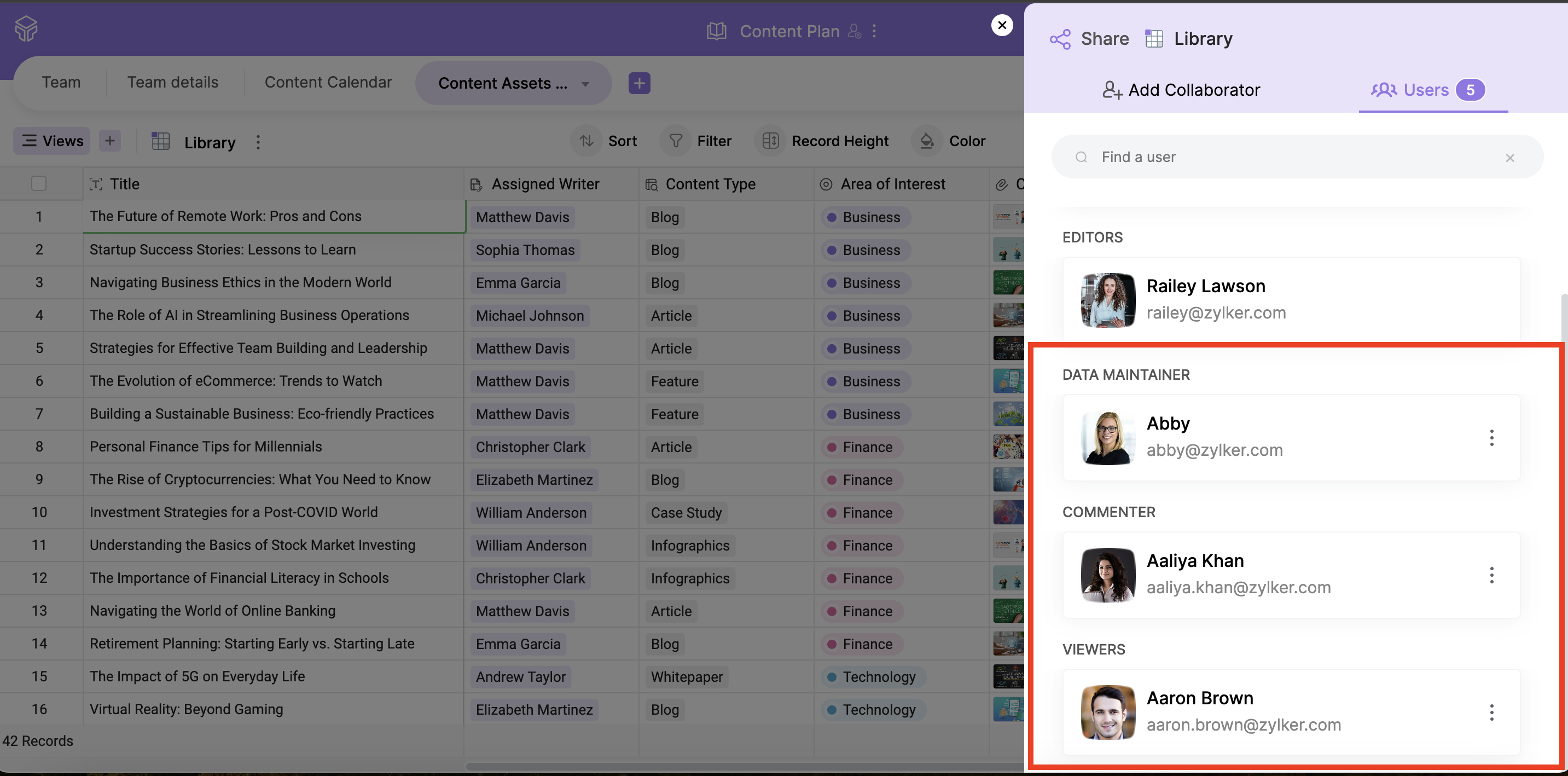 Data Maintainer: Can add, edit, and remove records in an allowed view of the base, but can’t configure fields. Can add, view, modify, and remove comments on records in the allowed view.