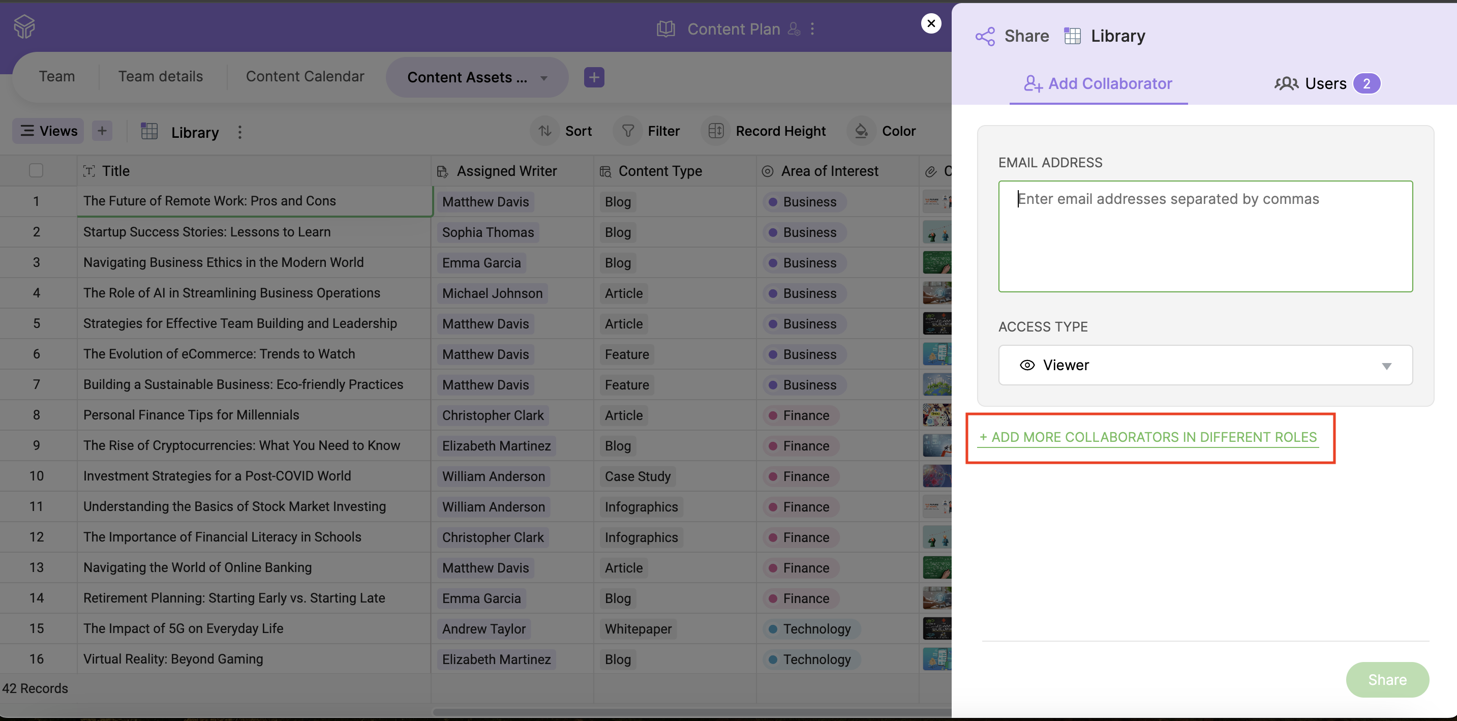 You can also include additional collaborators with a different access type by clicking the +ADD MORE COLLABORATORS IN DIFFERENT ROLES button.