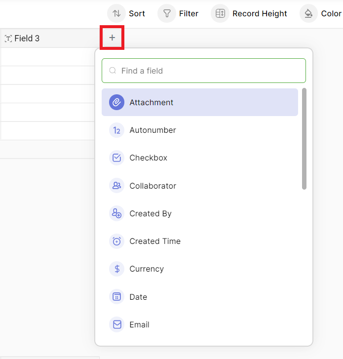 1. Click the + icon on the field header.