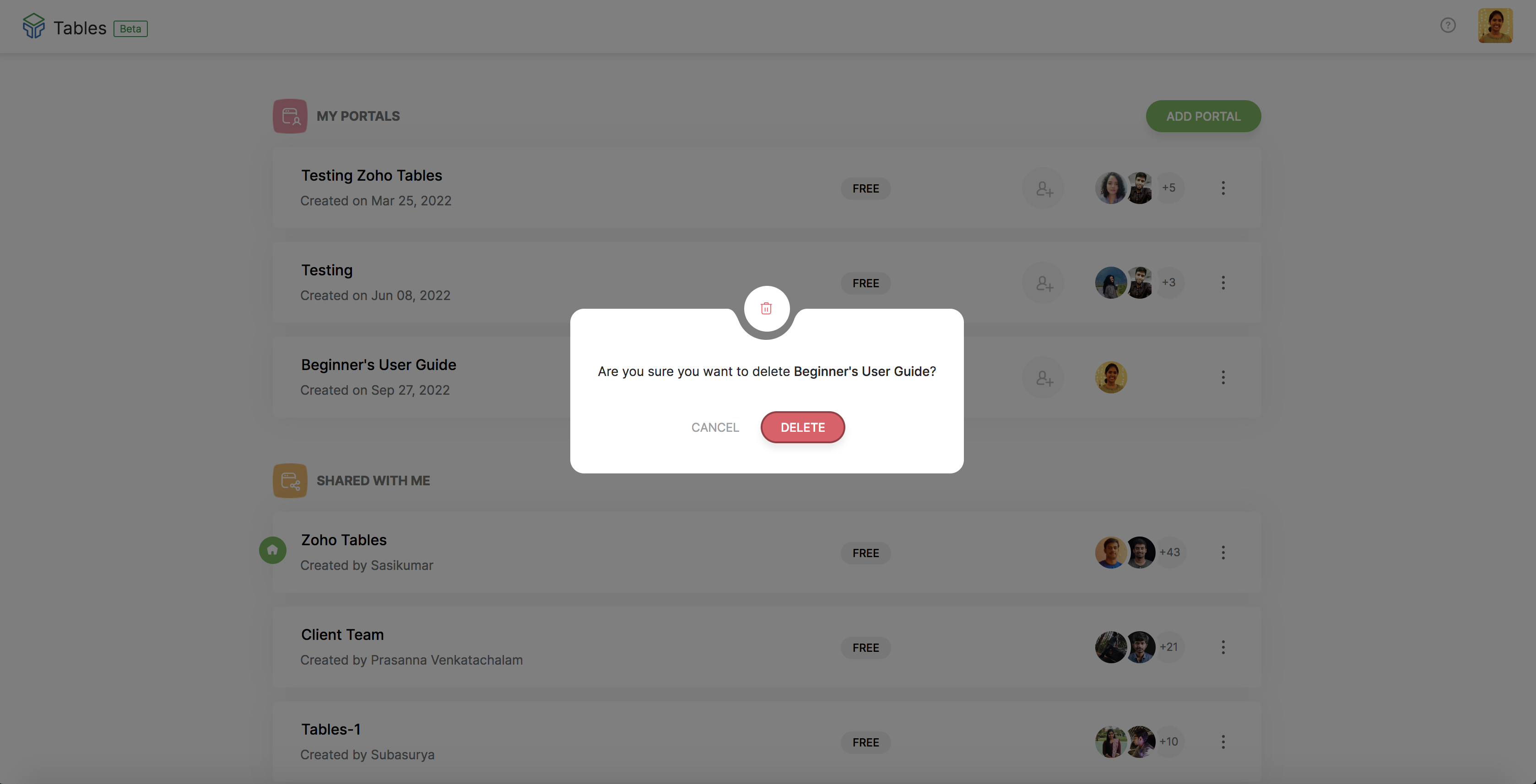 You can delete an existing portal along with the users and their files permanently. To delete an existing portal, go to the MY PORTALS Page, and click on the three red dots (More Options) and select the Delete option. A pop-up window will be displayed asking for your confirmation to delete the Portal. Click on DELETE. The portal will now be deleted. You will get an email confirming your Portal deletion.