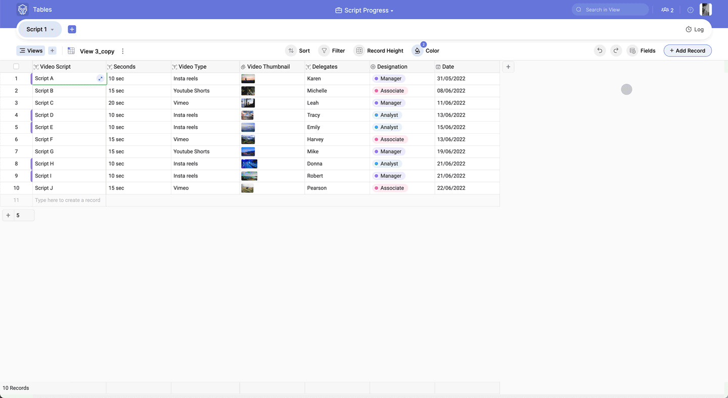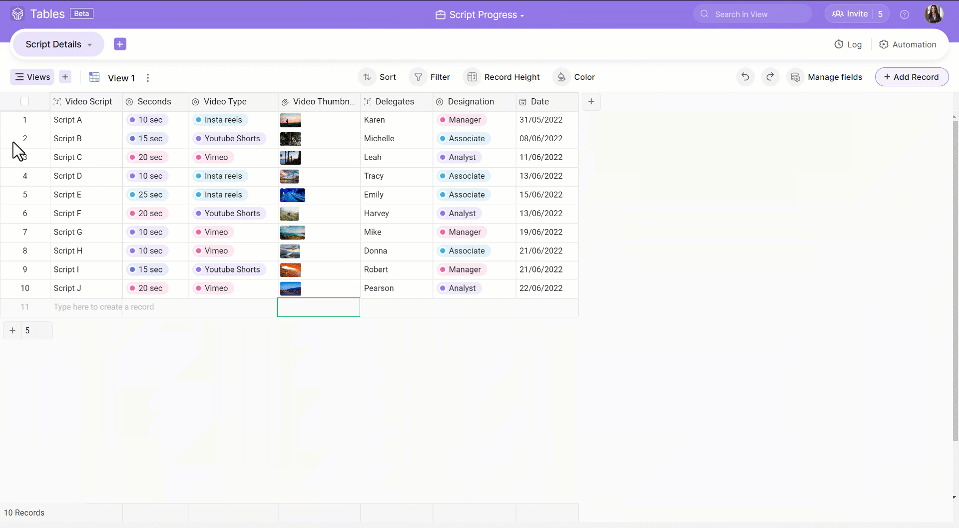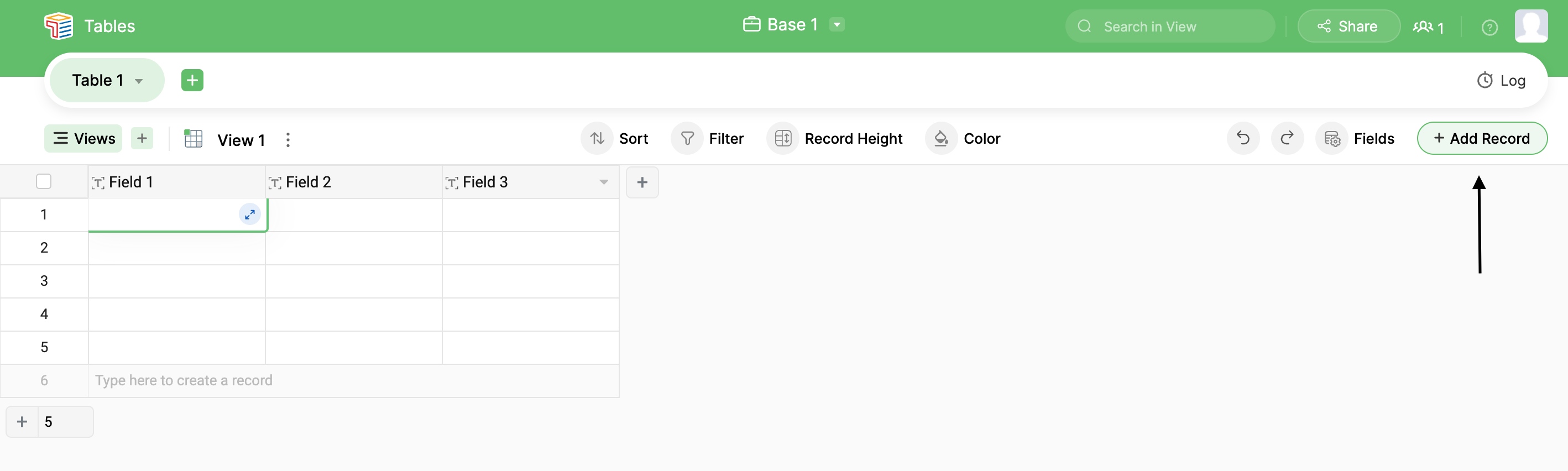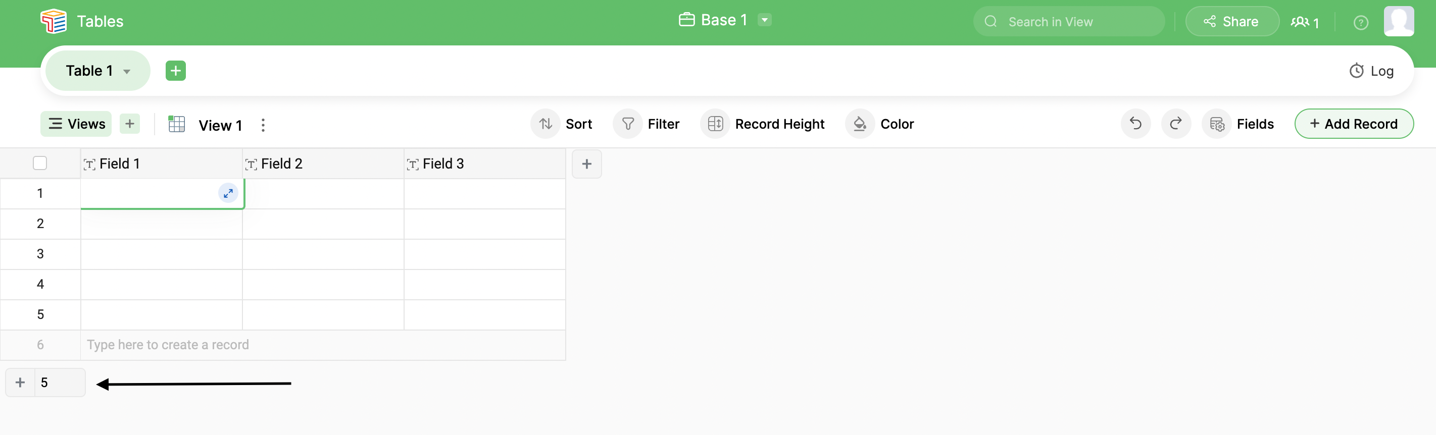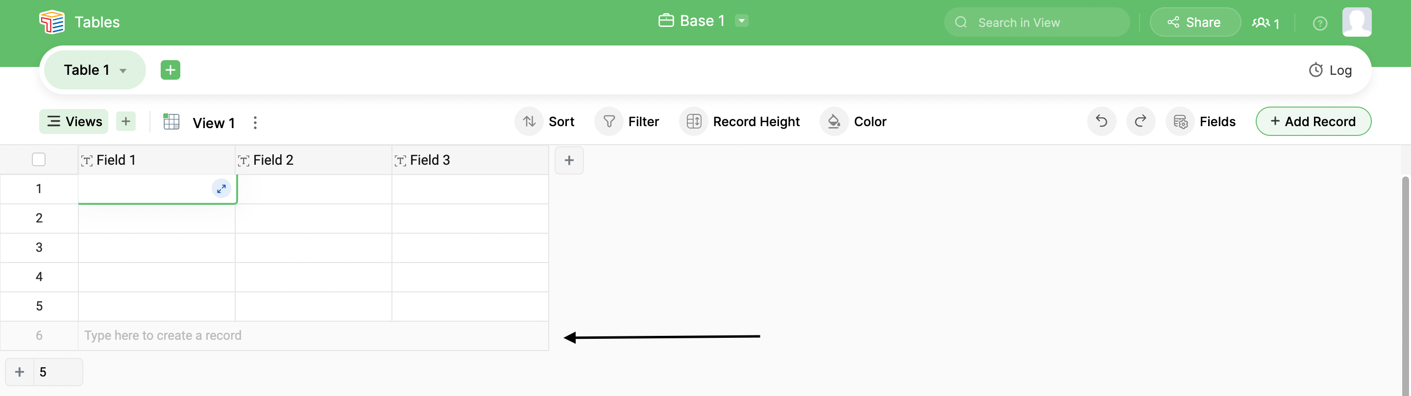 2. Begin to type in the empty record, and a new record will be added.