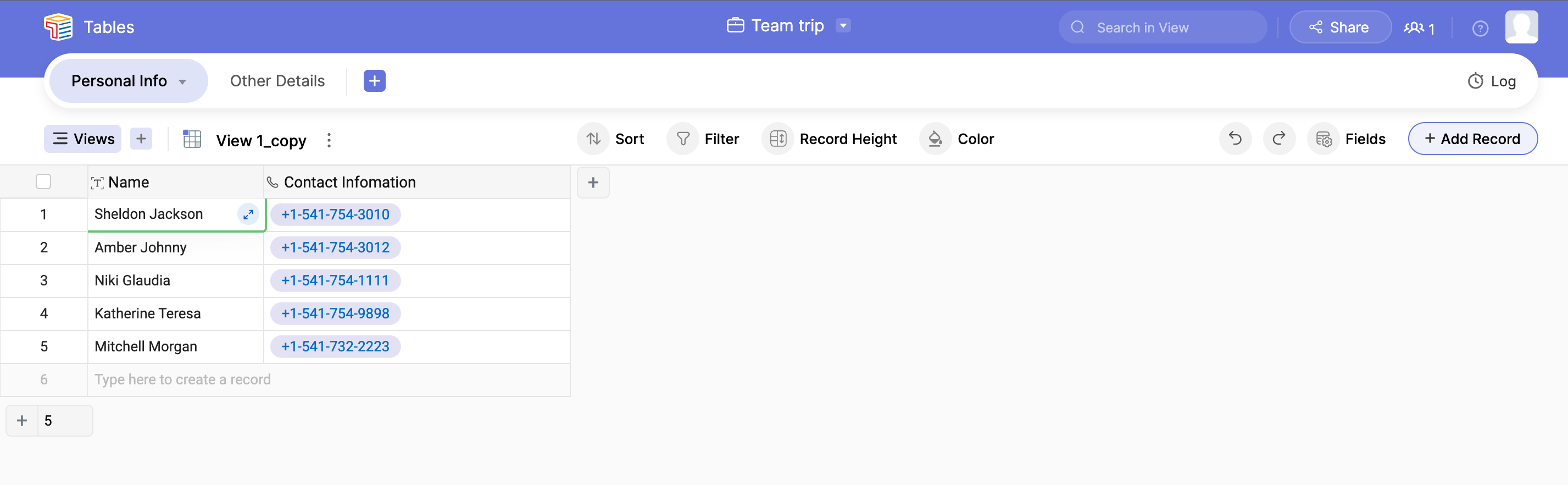 For example: If you maintain a 'Tour Planner,' each record is a 'different tourist spot' with information denoting its specialty, weather, routes of travel, and so on. In the case of 'Applicant Tracking,' each record is a 'different applicant' with their contact details, resume and other information.