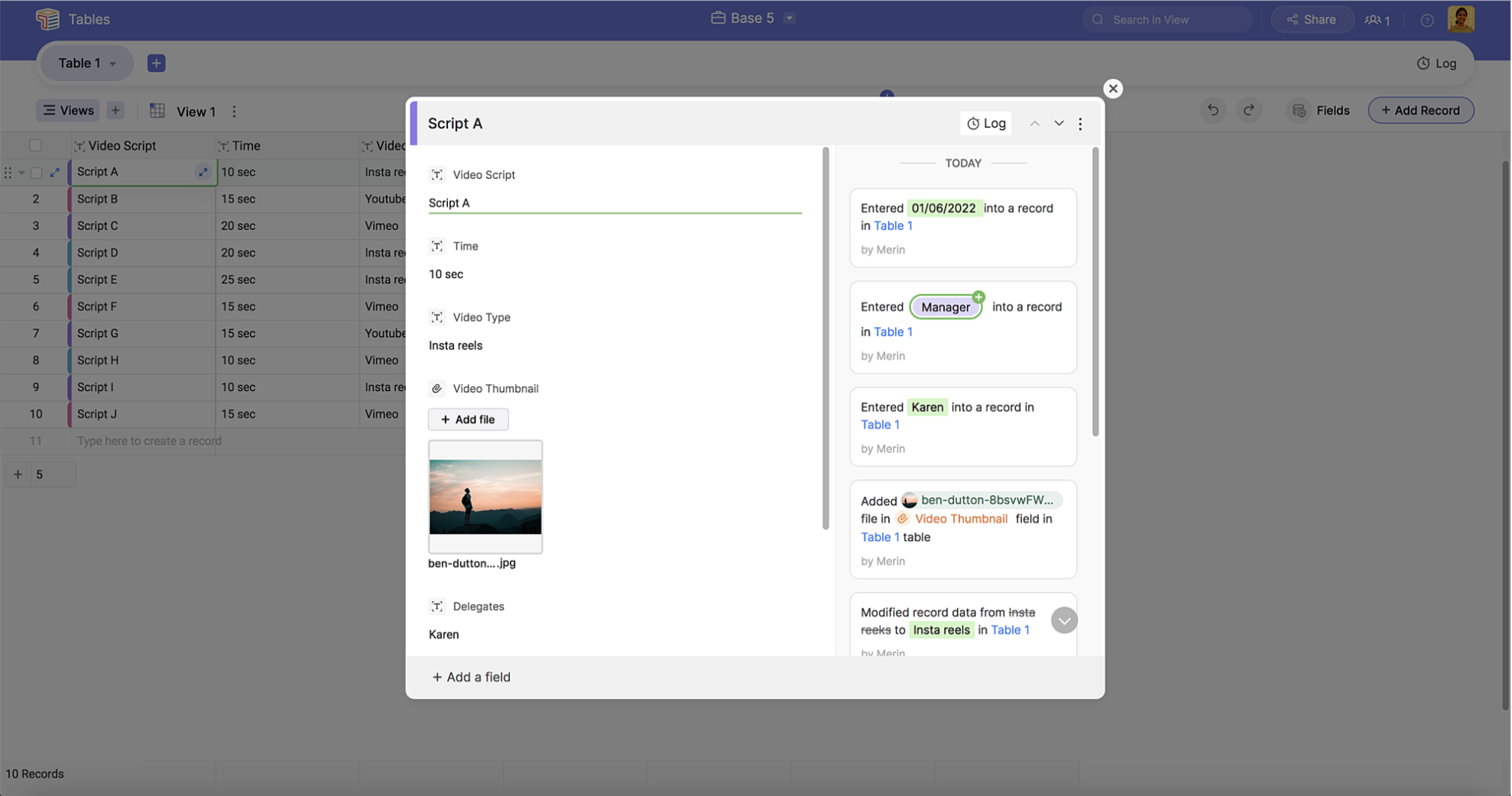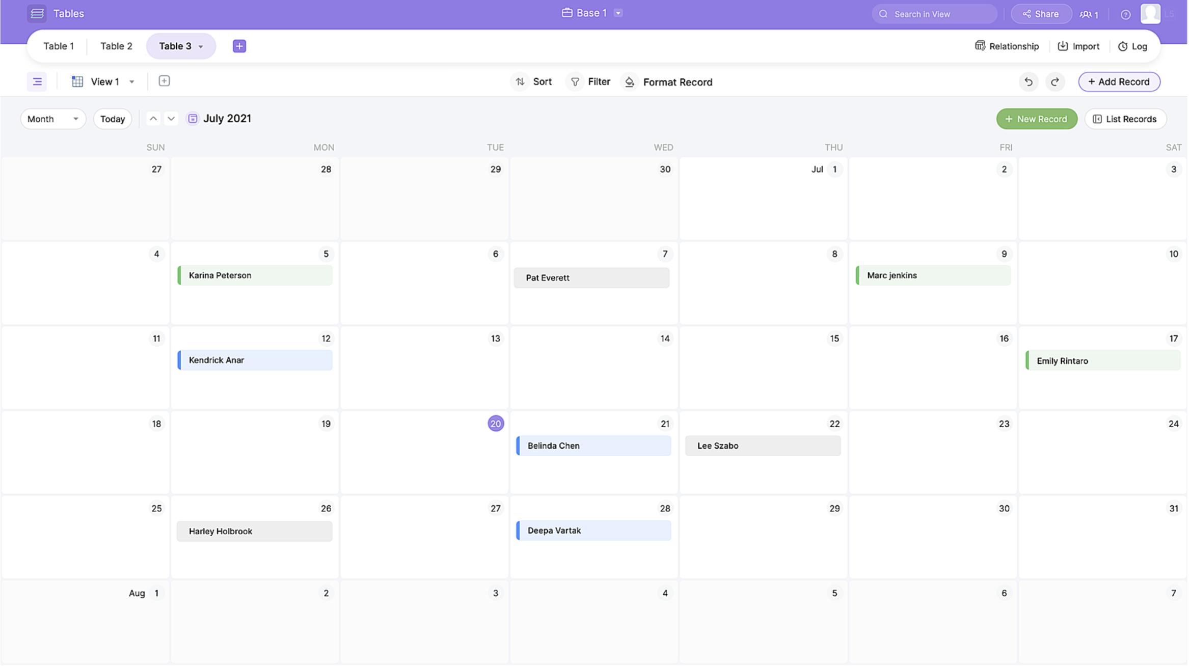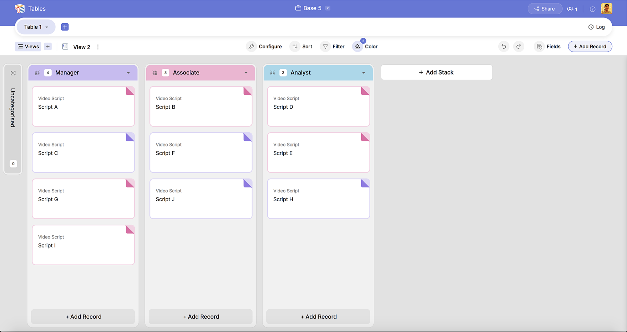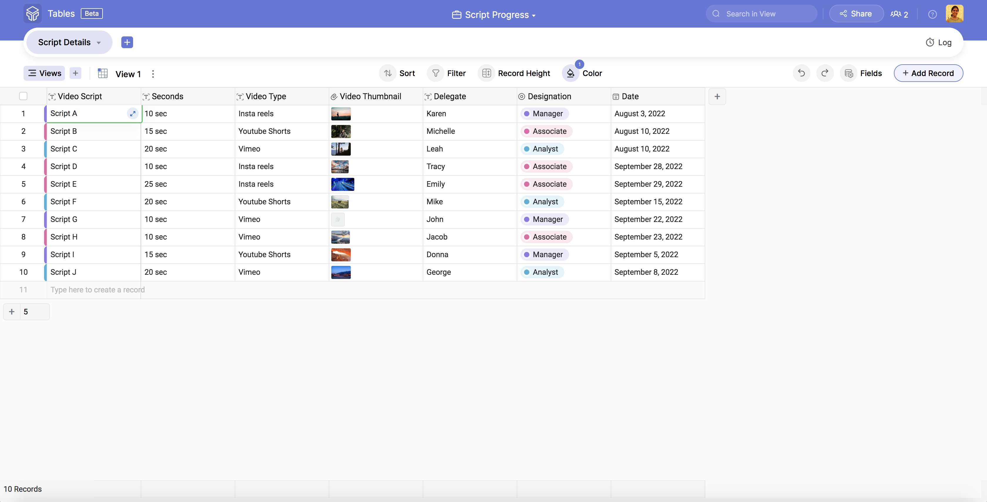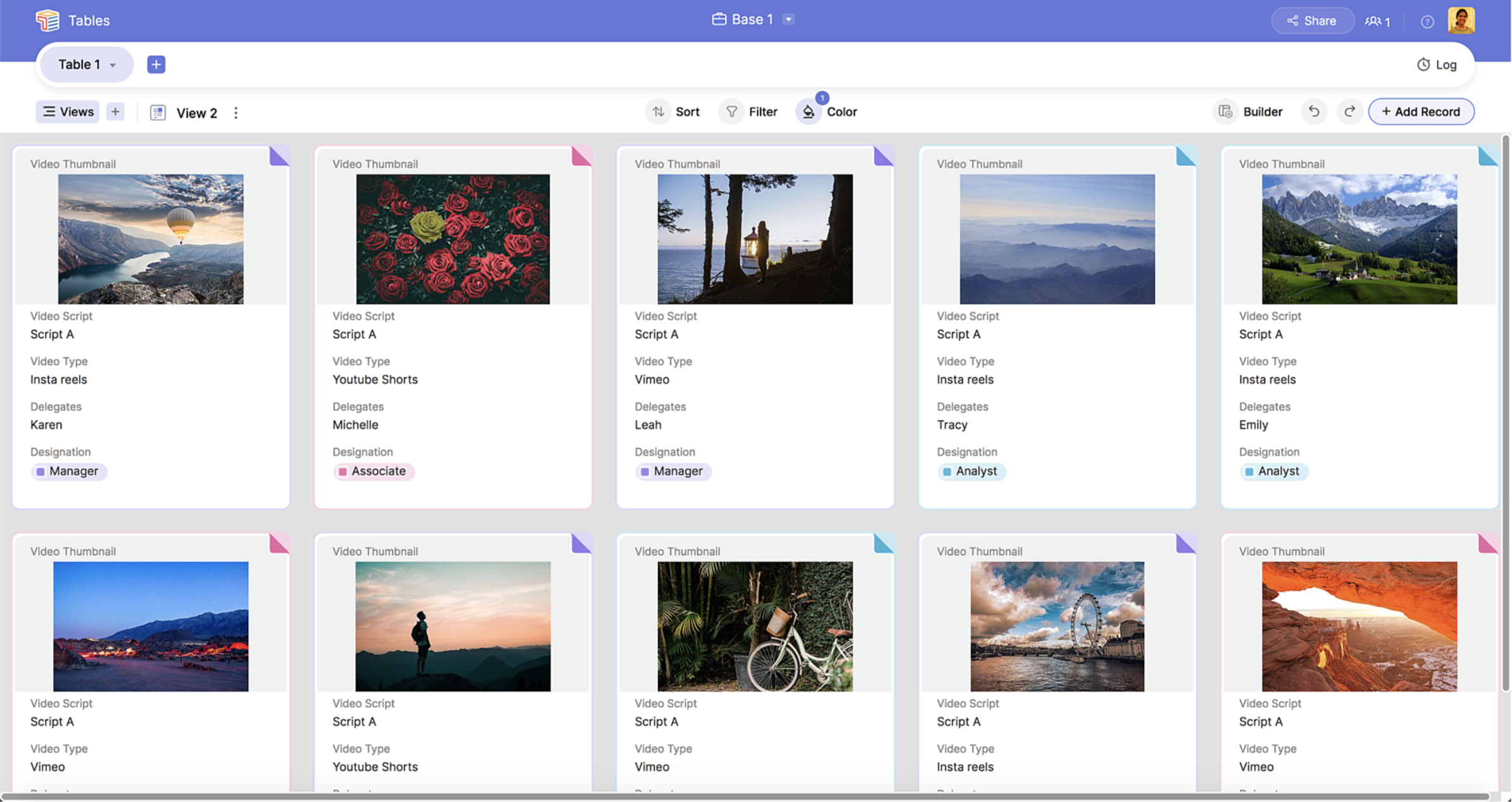 Zoho Tables lets you color-code your records with your choice of color to help you quickly identify indicative differences between records.
