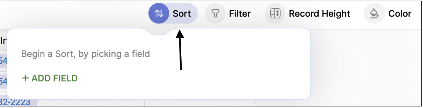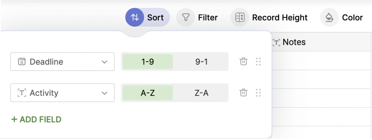 To perform a Multiple Sort, click + ADD FIELD to select another field from the dropdown.