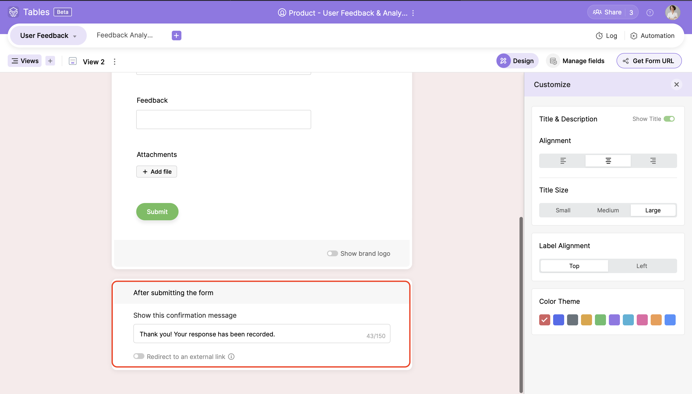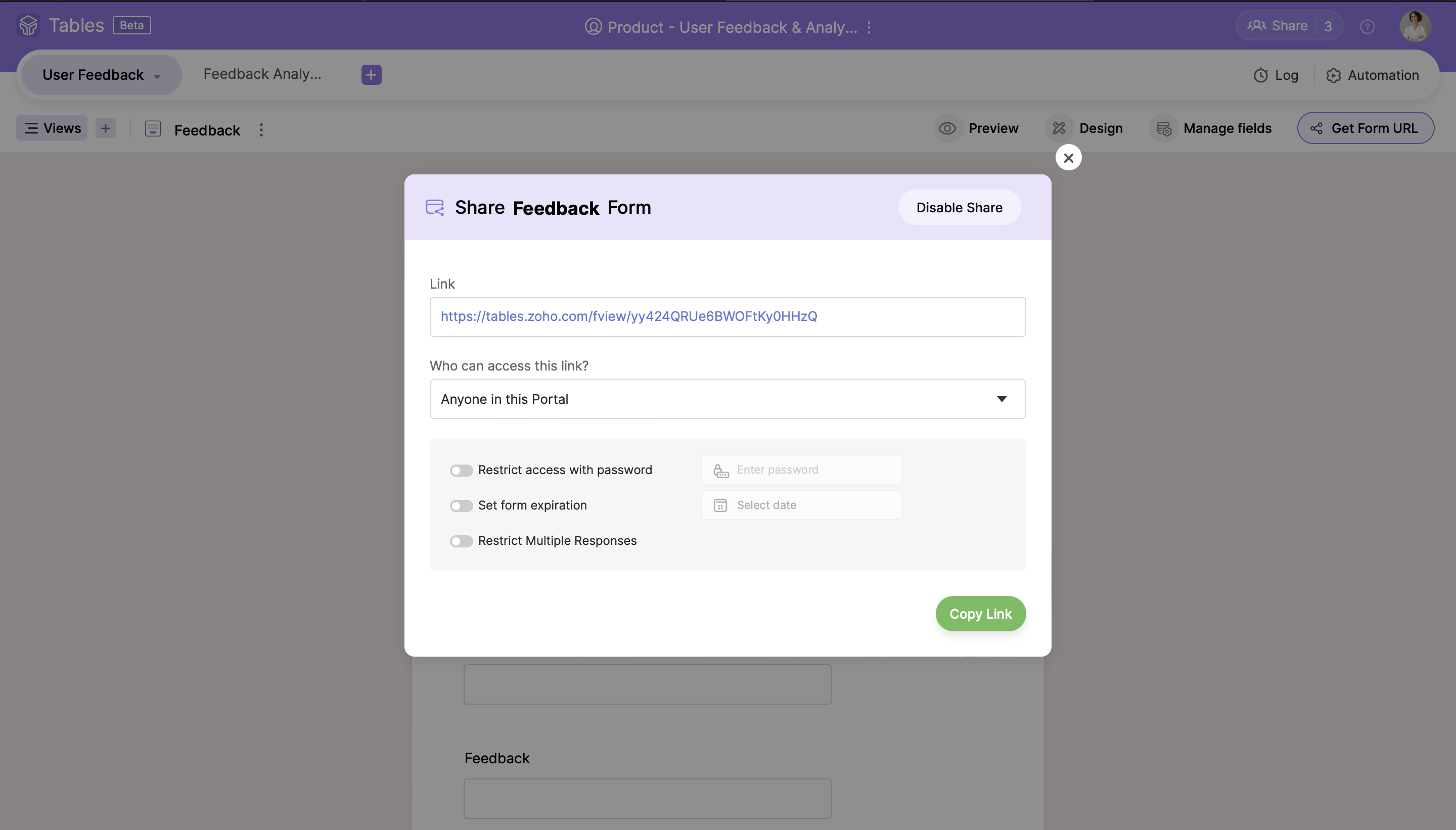 With Zoho Table Forms, you can create forms to suit your requirements that integrate seamlessly into your workflow.
