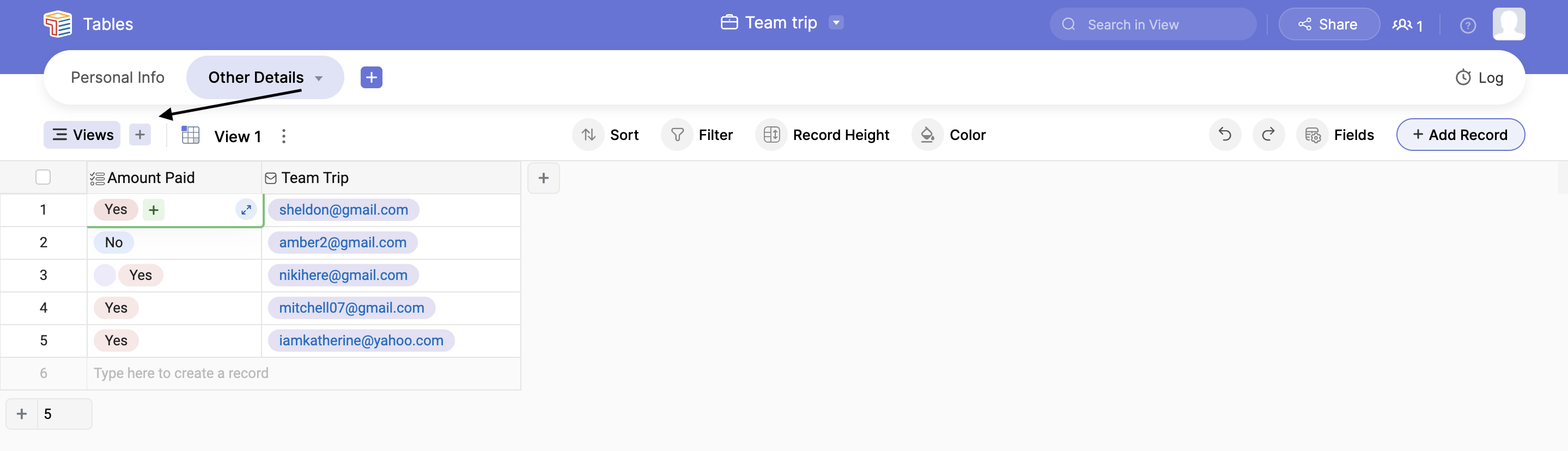 To create a new view, click the Add a View option (+ icon) next to the views option.