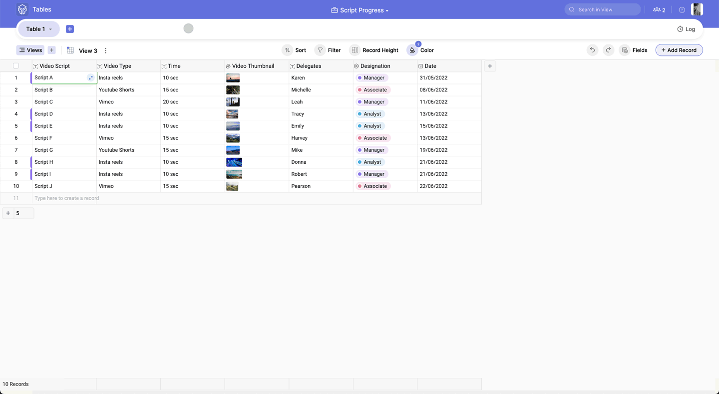 Views in the Zoho Tables mobile app allow you to organize and visualize your data in different formats. You can create views like Gallery, Grid, Kanban, and Calendar, depending on your requirements. Grid view Grid view is perfect for displaying data ...