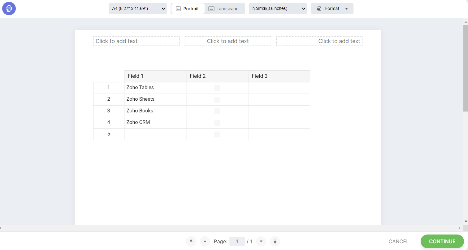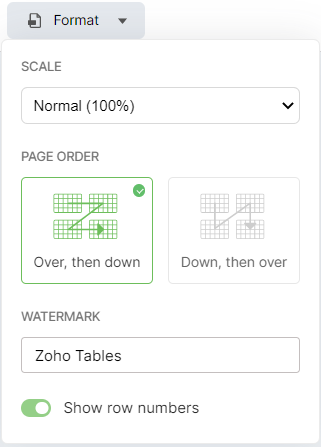 You can print the data in the tables using the Print option. To print your data, click the Print option from the Table's dropdown menu.