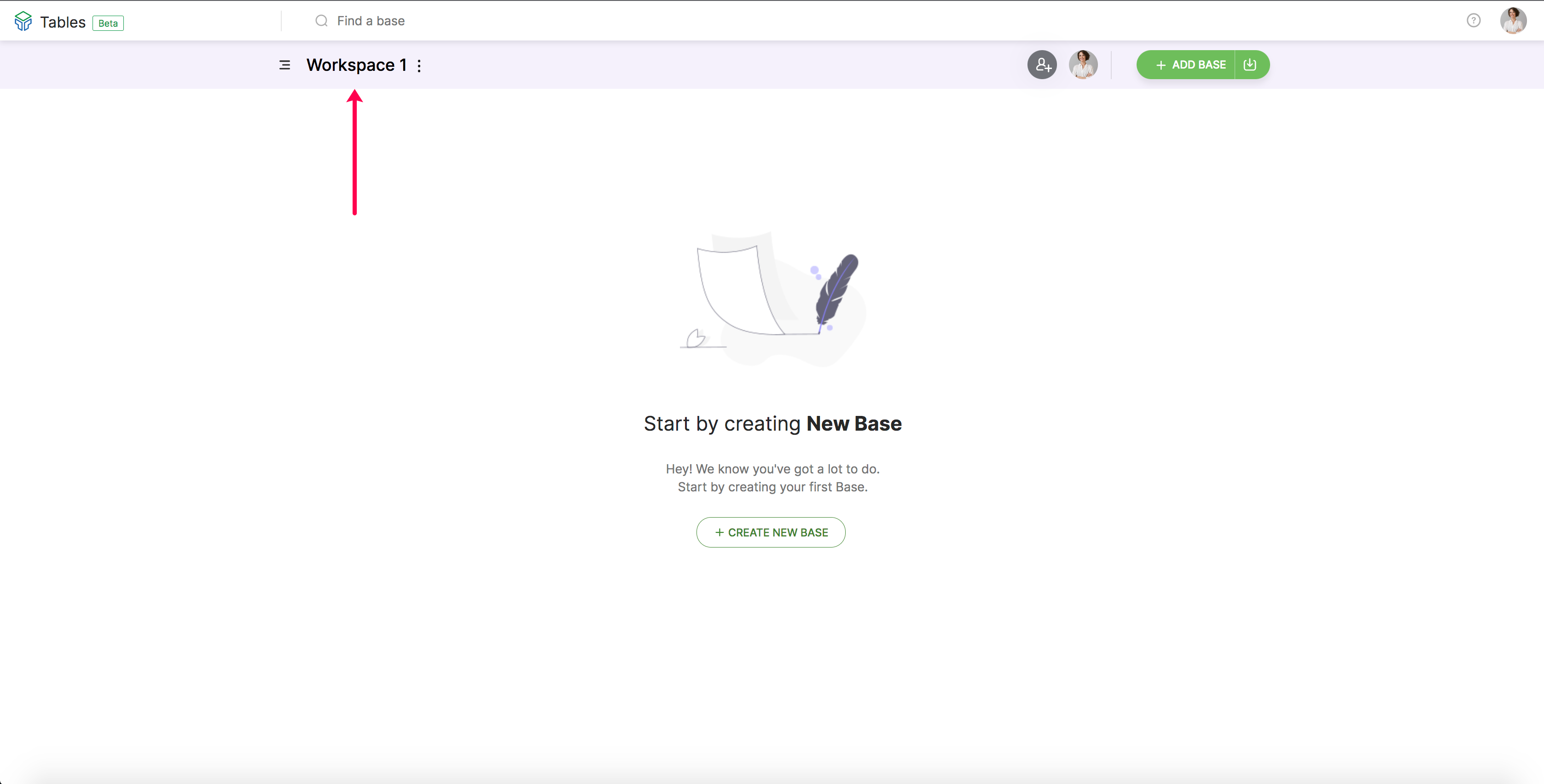 Note: In each workspace, you can create multiple bases.