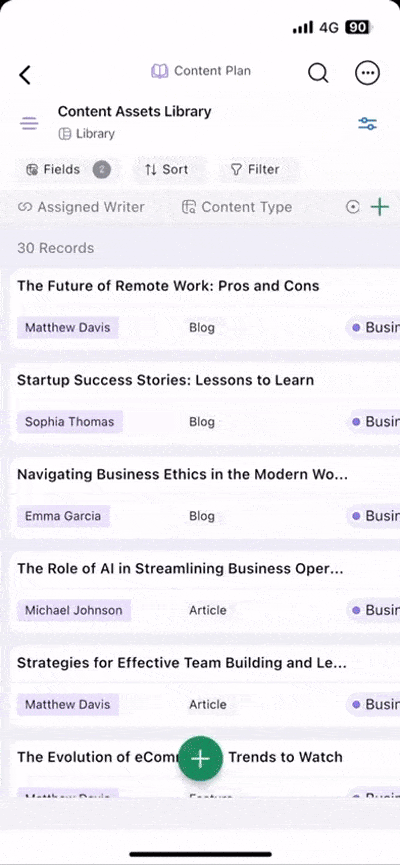 Views in the Zoho Tables mobile app allow you to organize and visualize your data in different formats. You can create views like Gallery, Grid, Kanban, and Calendar, depending on your requirements.
