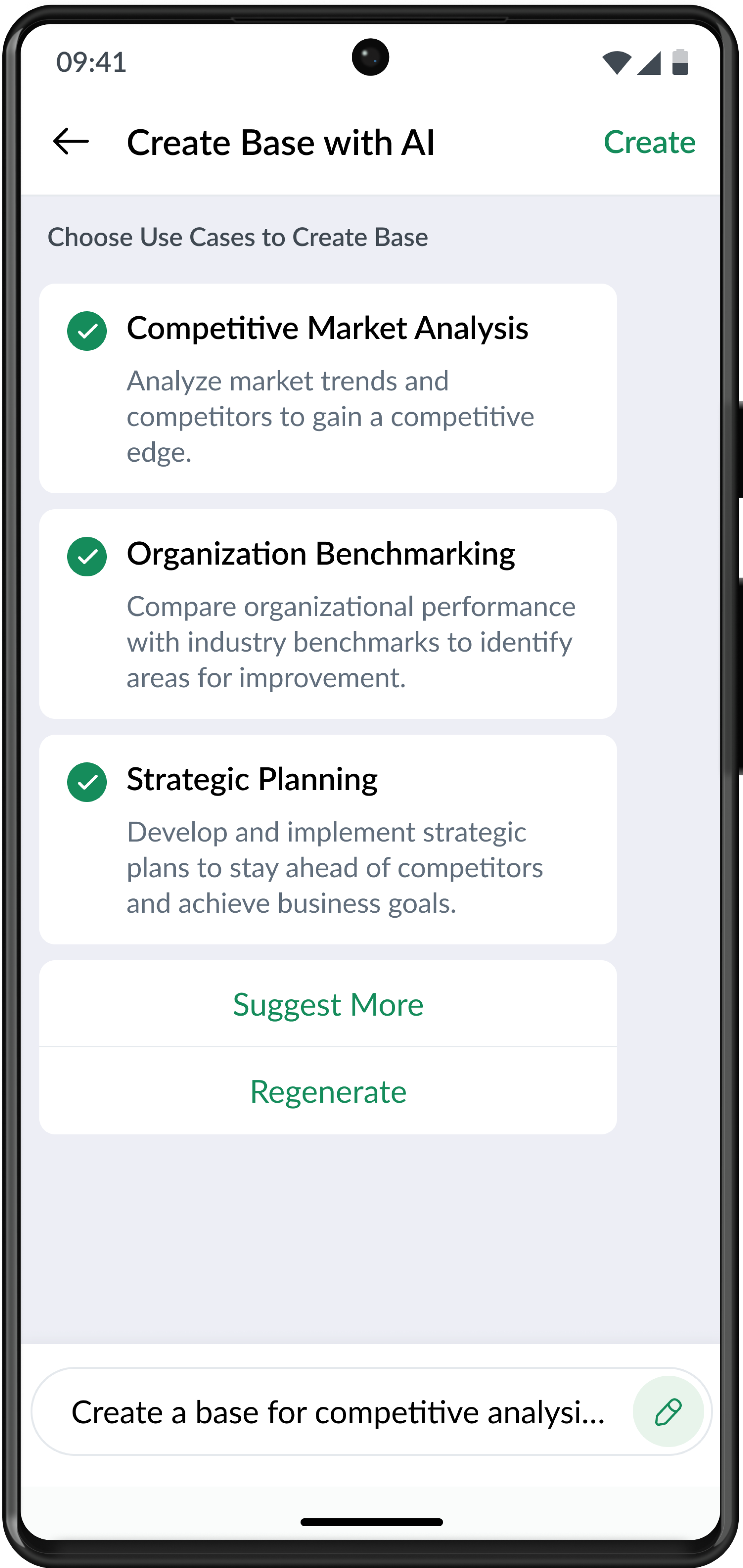 You can also click Suggest More to get more use case suggestions, or click Regenerate for new use cases.
