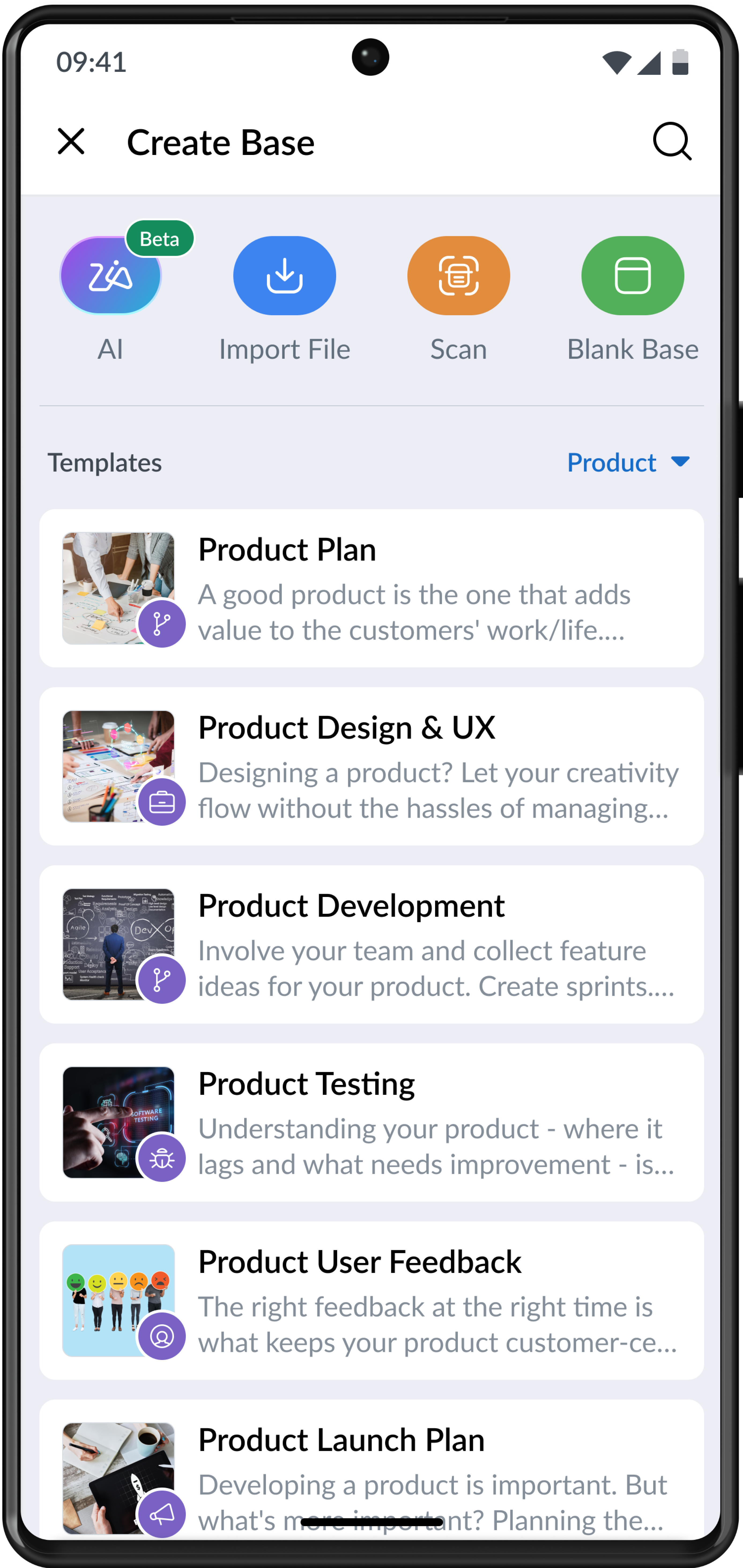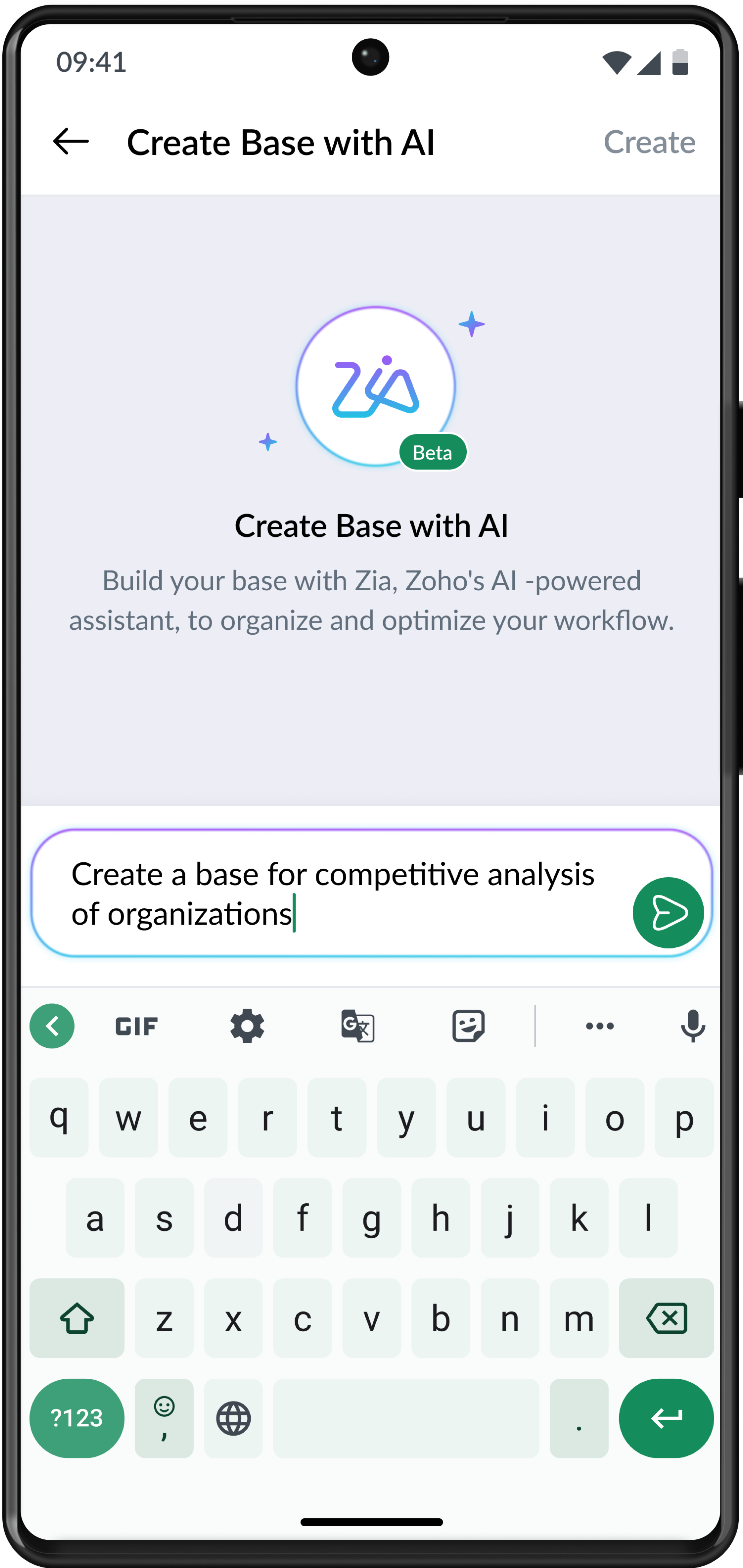 You can create customized bases that suit your workflow with just a simple prompt using Zoho's AI-powered assistant, Zia.