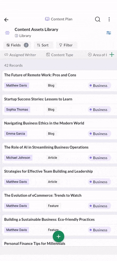 Views in the Zoho Tables mobile app allow you to organize and visualize your data in different formats. You can create views like Gallery, Grid, Kanban, and Calendar, depending on your requirements.