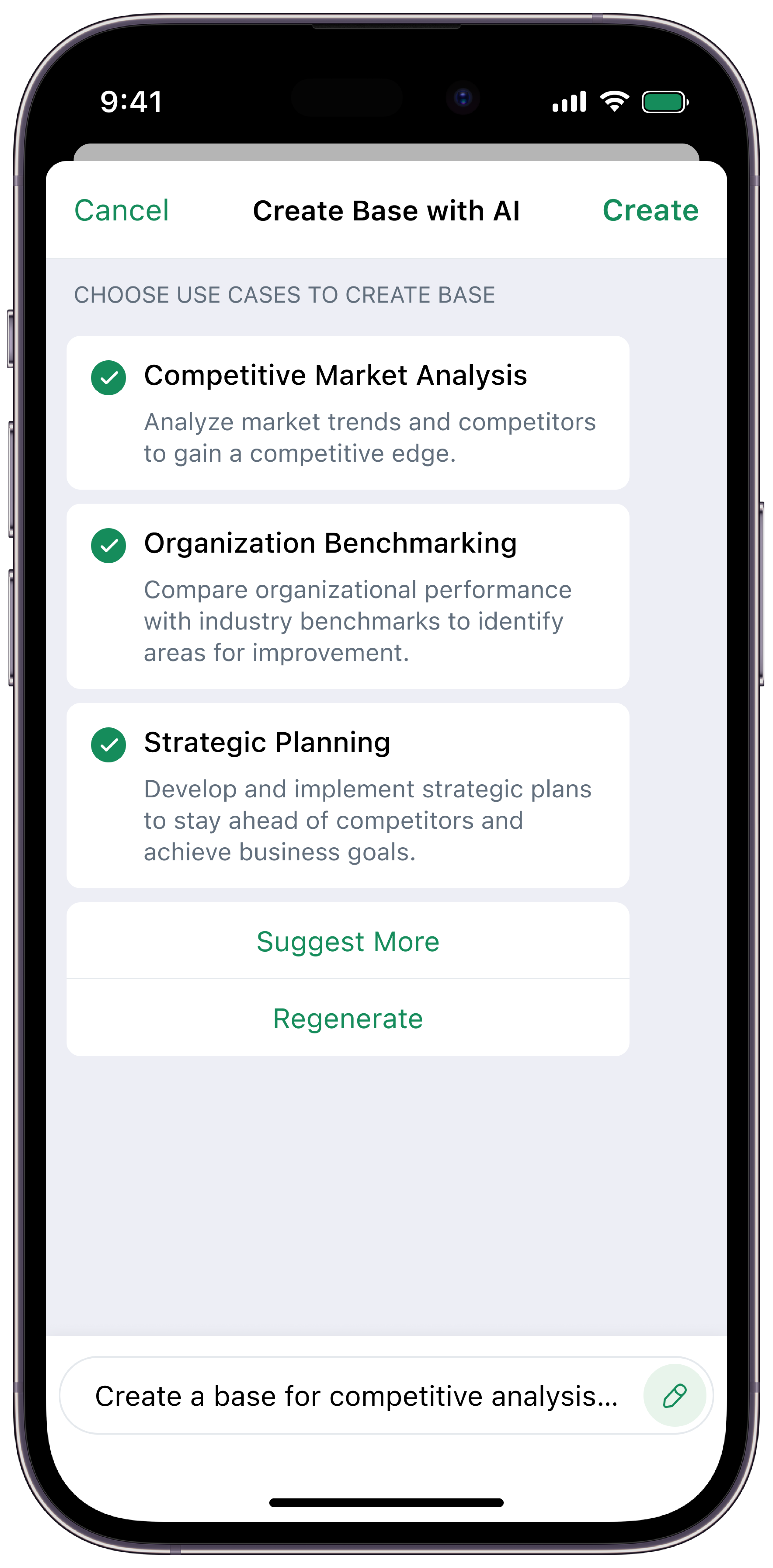 Once you've chosen your use cases, click Create, and your base will be created based on the use cases you've chosen.