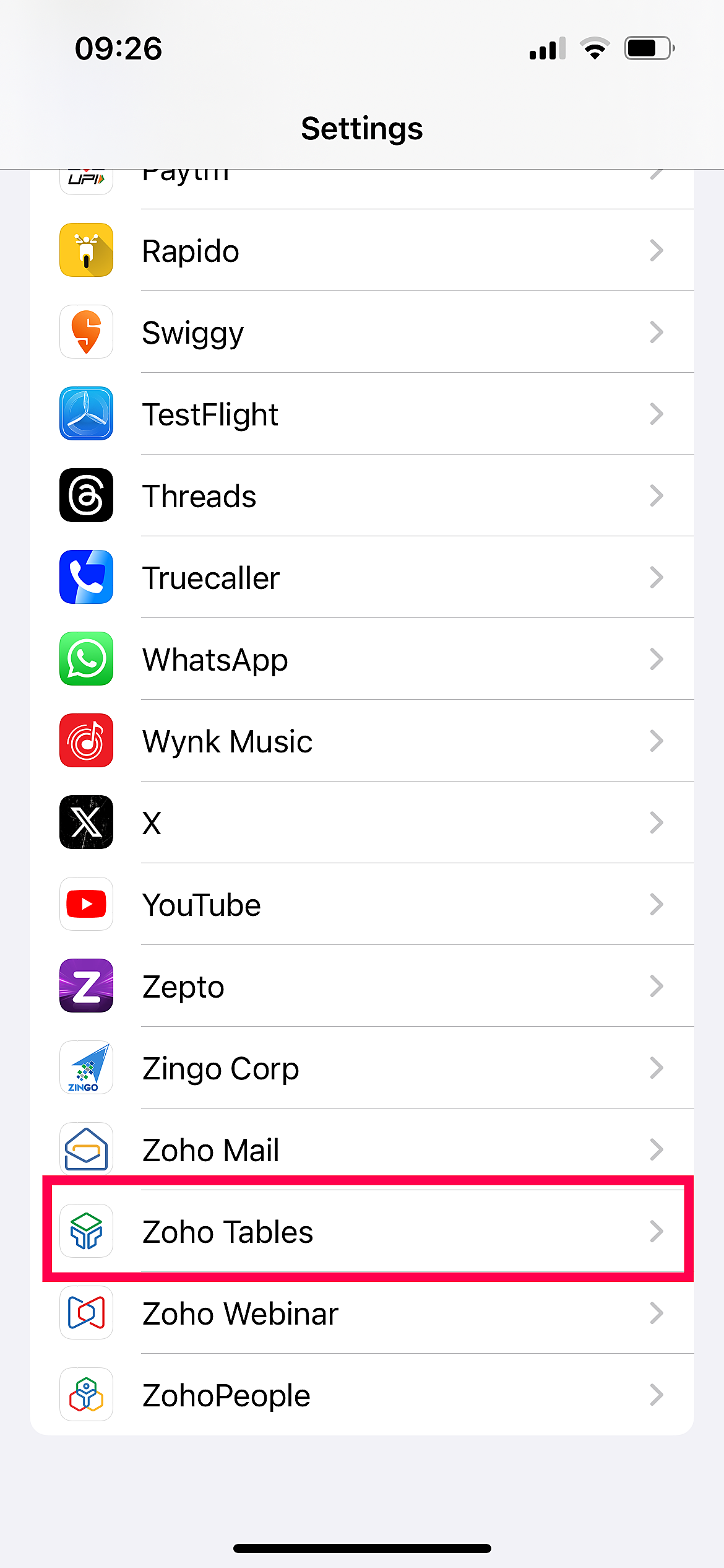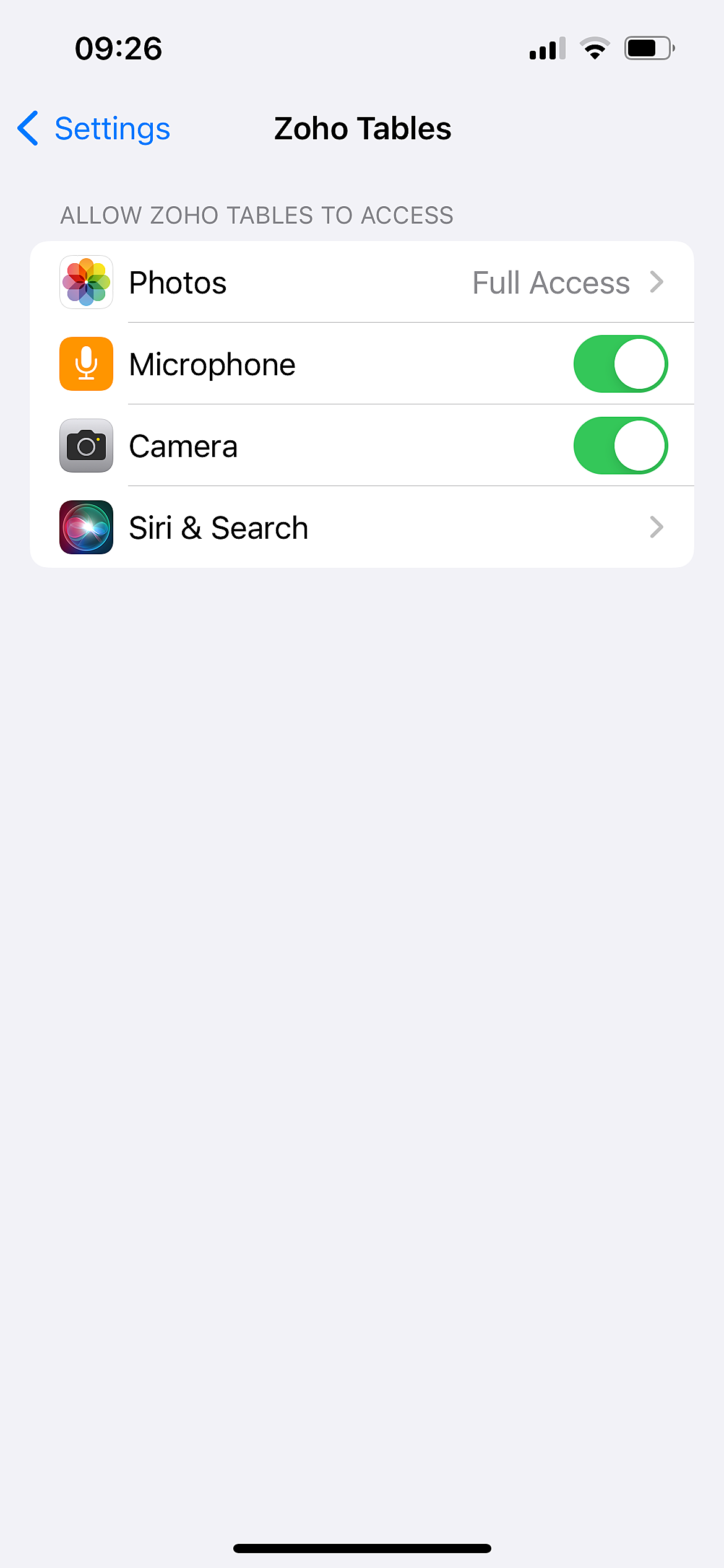 On your iPhone, go to Settings > Zoho Tables.