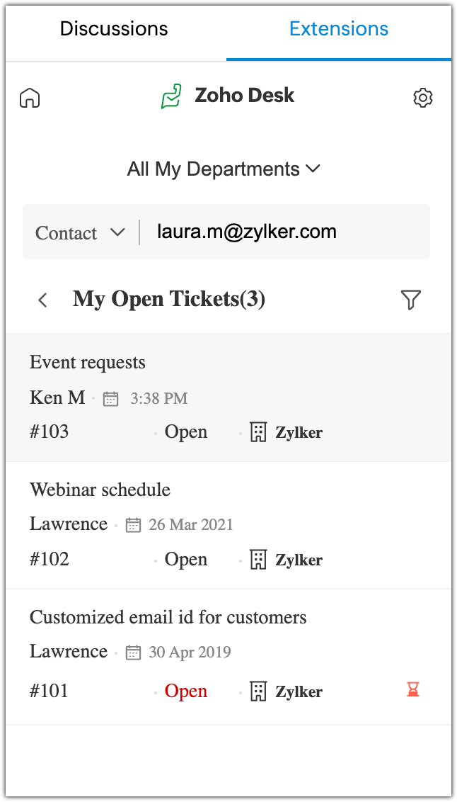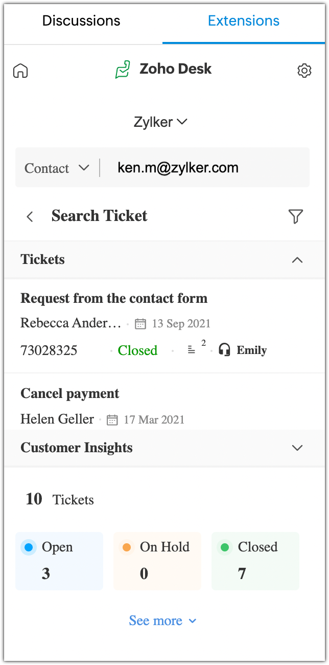 Zoho Desk is a help desk application that lets you manage customer support activities efficiently. With Zoho Desk extension for Zoho TeamInbox you can access tickets and perform activities on Zoho Desk while reading contextual emails.