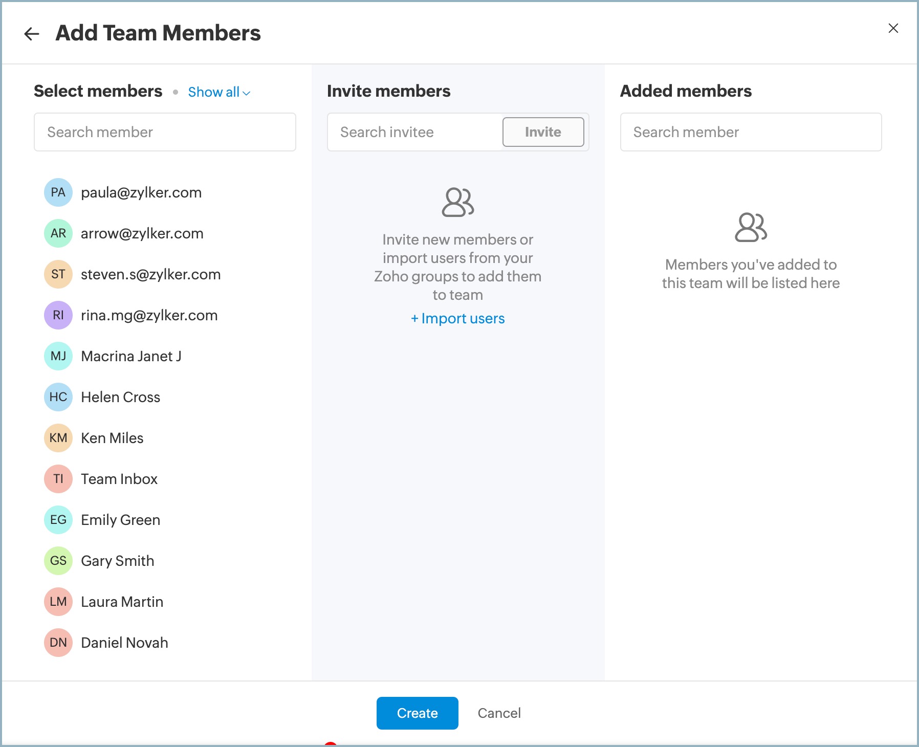 6.   Import users from other Zoho groups where you have admin or moderator access.