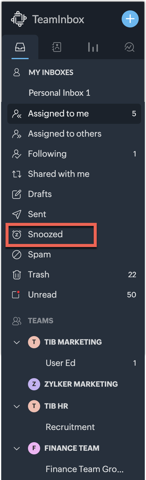 To cancel the snooze time that you've set for a thread, find the thread under the Snoozed view, click Snoozed from the top bar and click Unsnooze. The thread will now be removed from the Snoozed view and will reappear in your inbox under the Open view. The Snoozed threads will also be visible inside 'Snoozed' on the left pane.