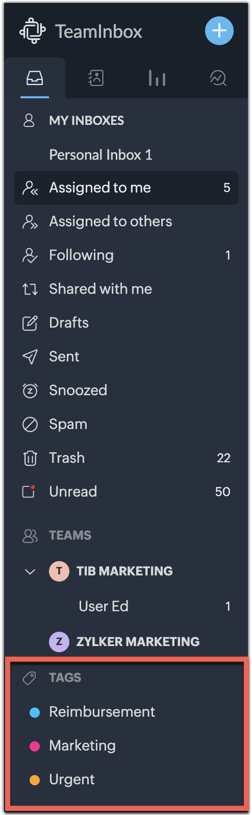 Tags let you organize your threads based on topics. The created tags will be listed on the left pane under the title 'Tags'. Click on the tag name to view the threads listed under them.