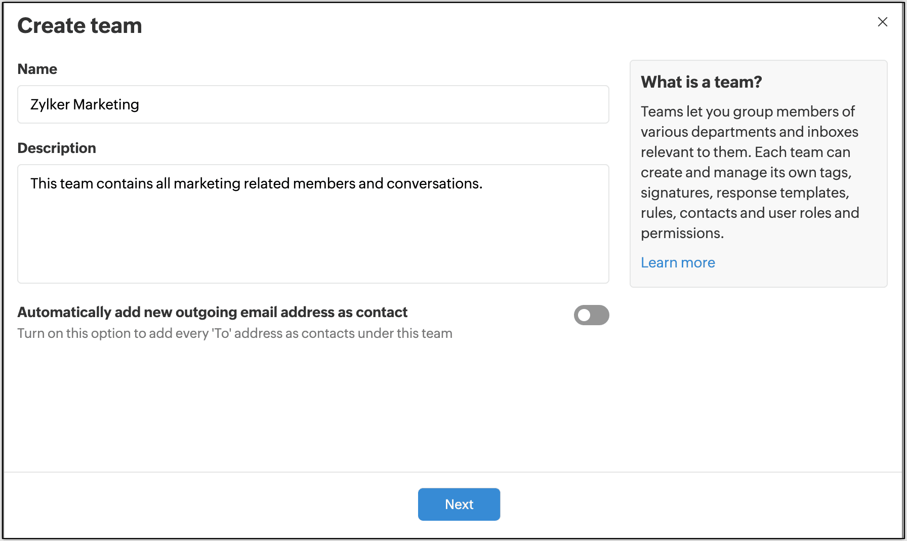 After you've created the team, create inboxes under it to start receiving messages. The team you've created will be listed in the left pane, click it to view all the messages received in the inboxes created under this team.