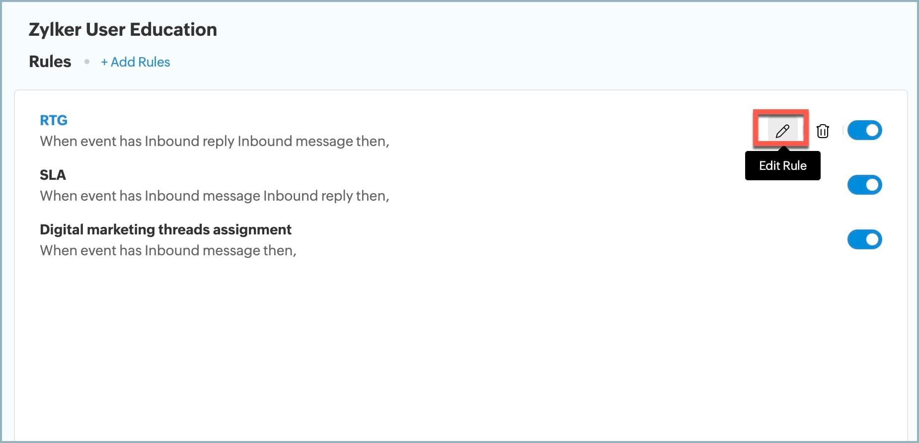 5. Click on the Rule or the edit icon to modify it.
