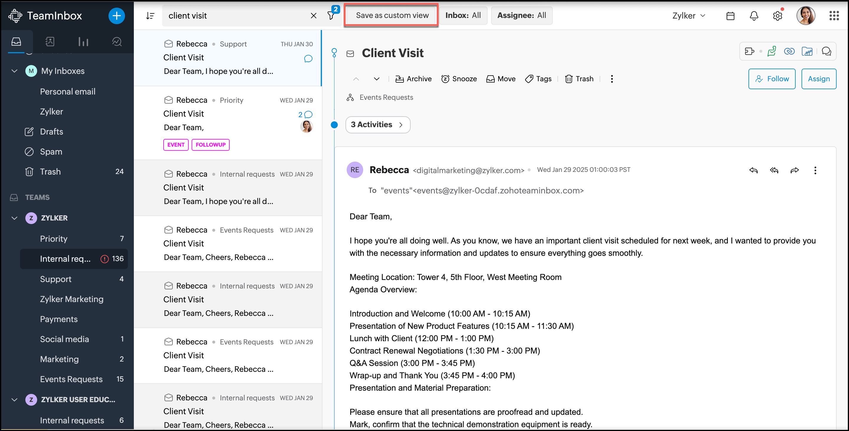 Zoho TeamInbox lets you create both shared and personal custom views.