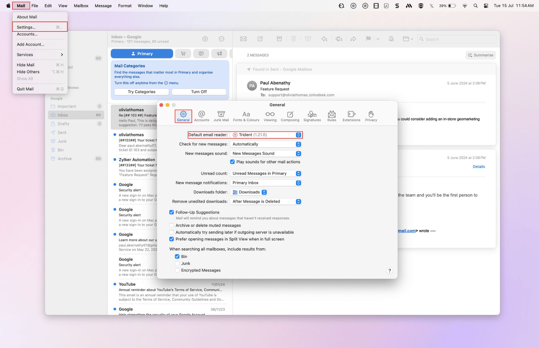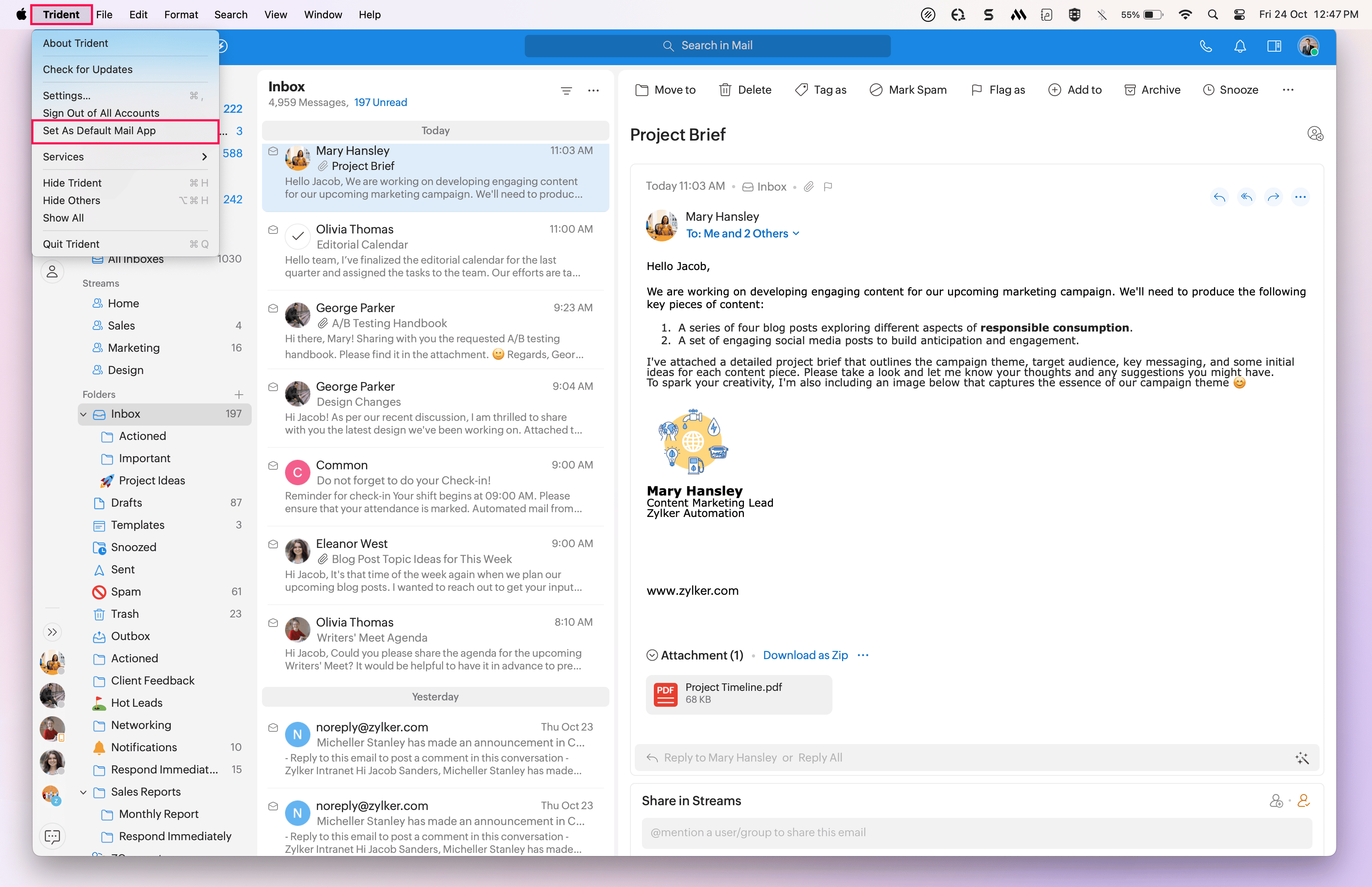 Upon setting Trident as the default email client, clicking any mailto links or .eml files will directly open Trident, helping you save time by keeping all email actions consistent and efficient.
