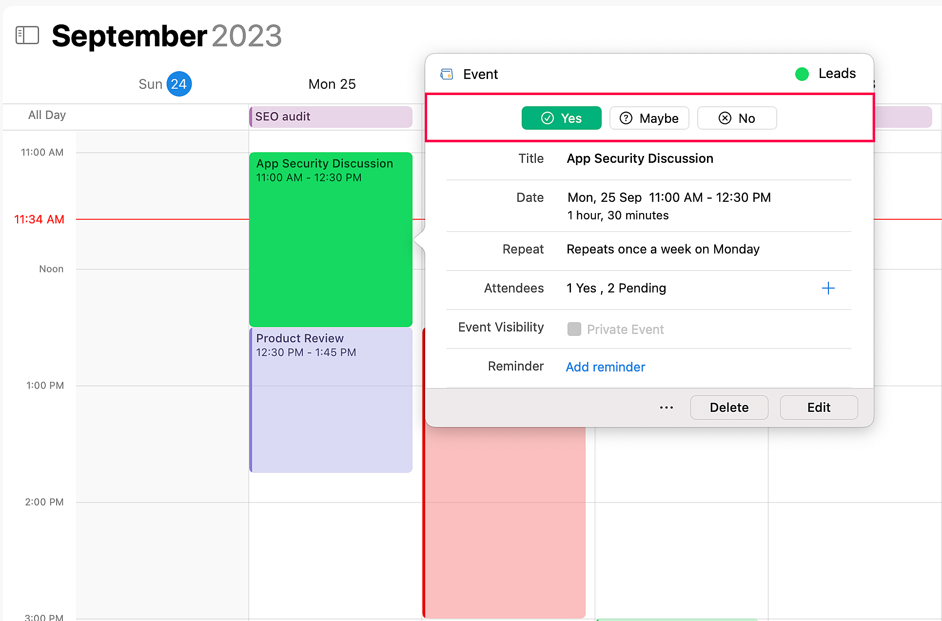 Note: The optional participants have permission to add participants, edit event details like other participants, and can also RSVP to the event.