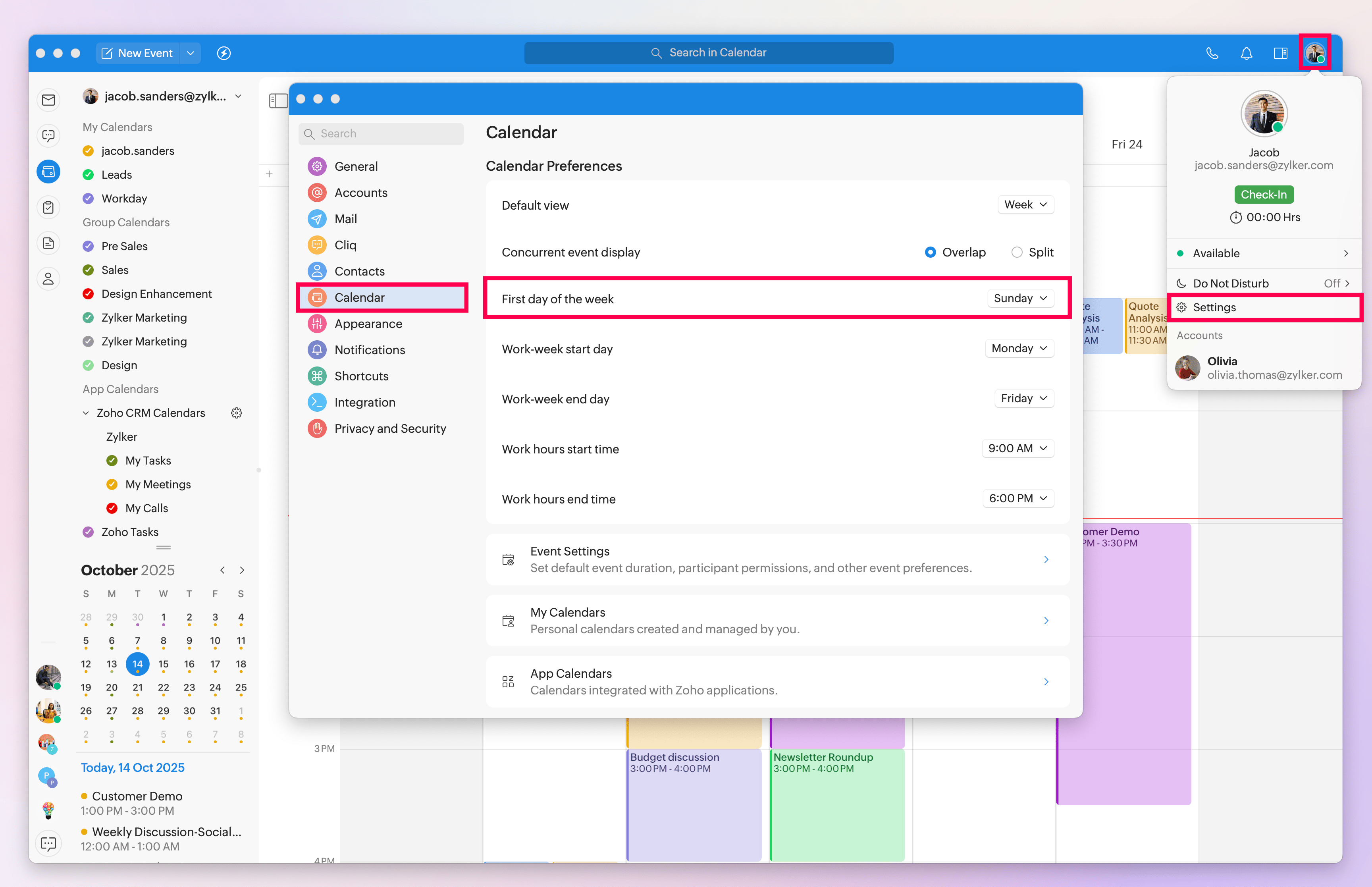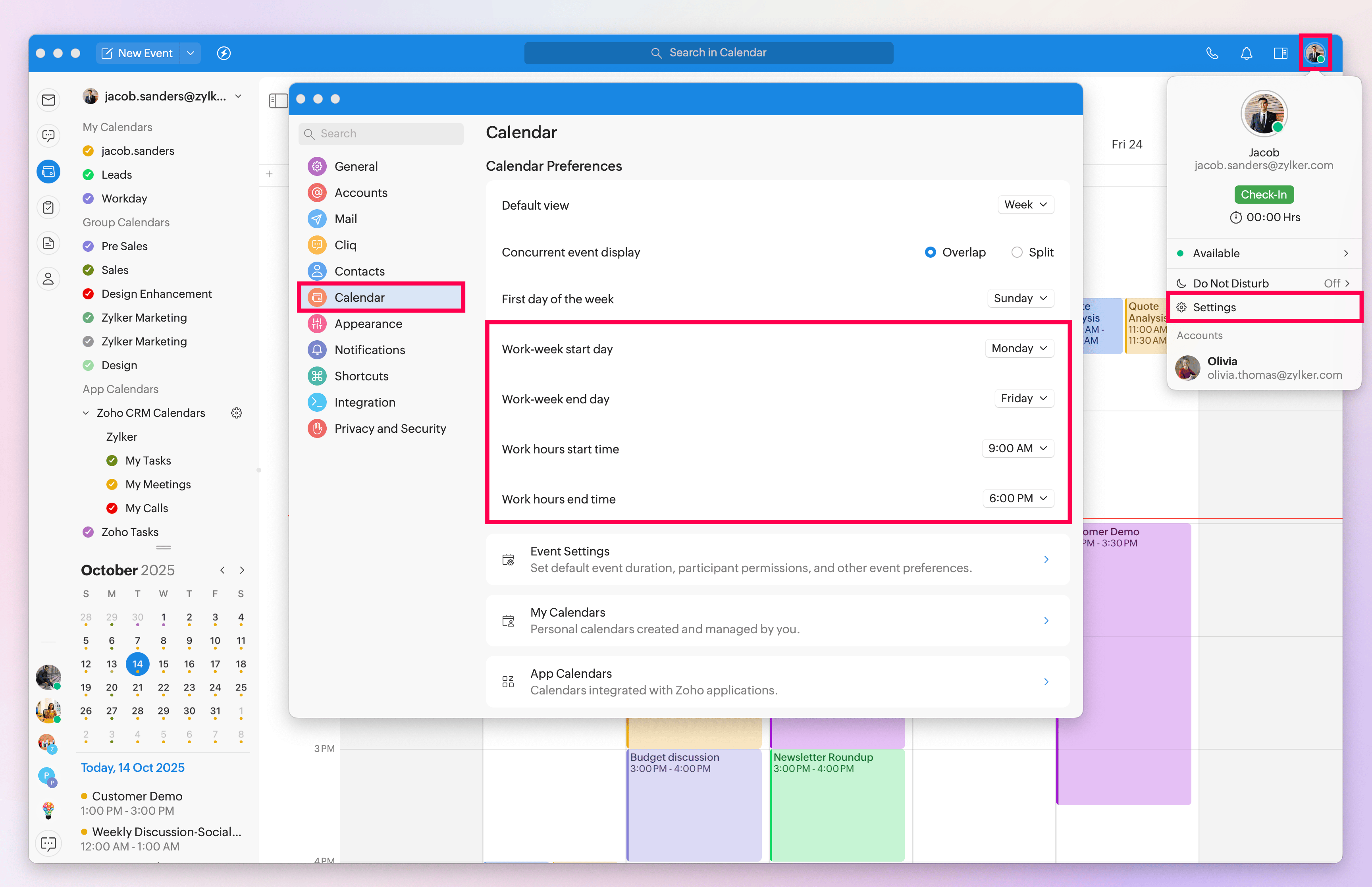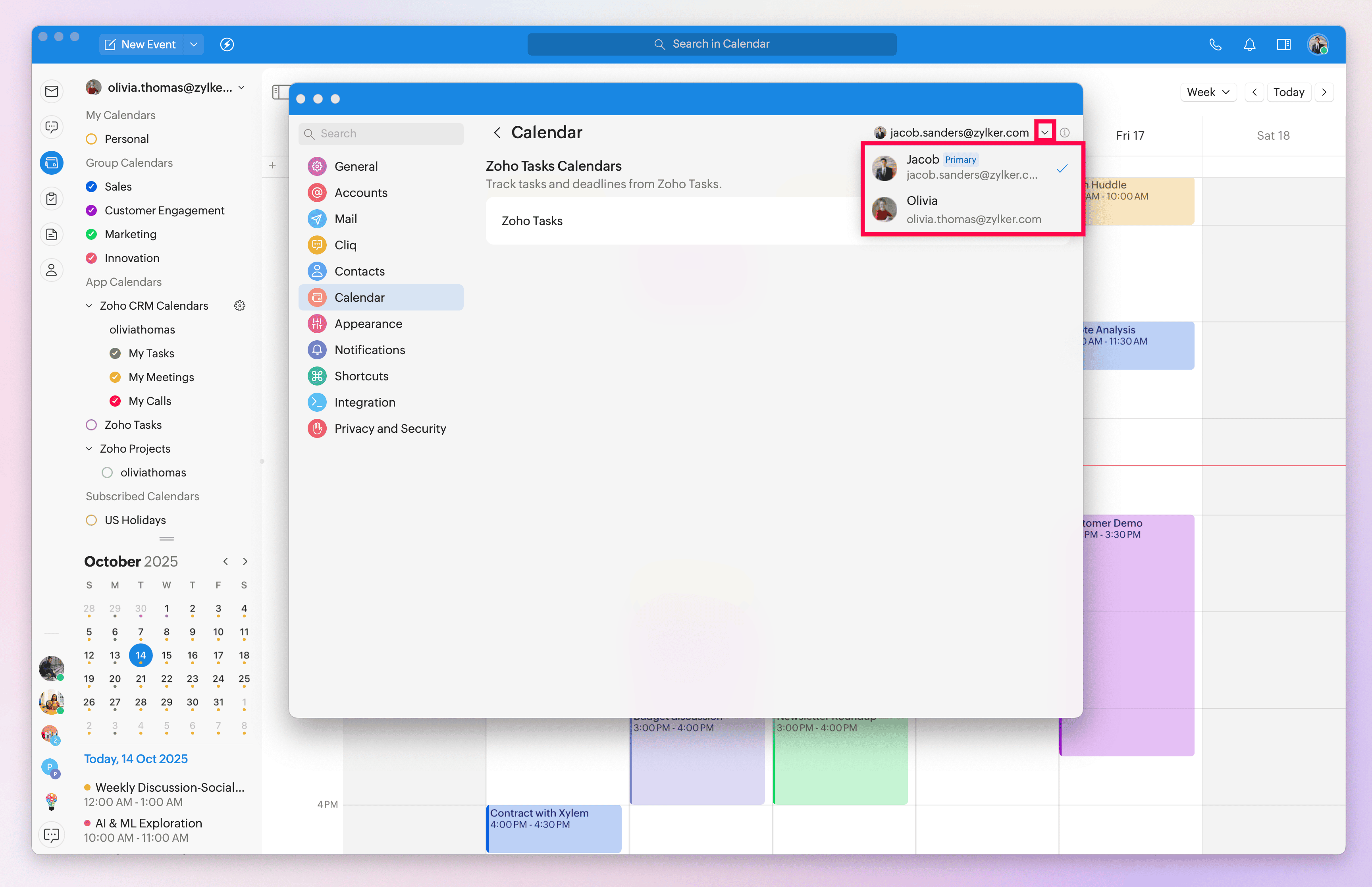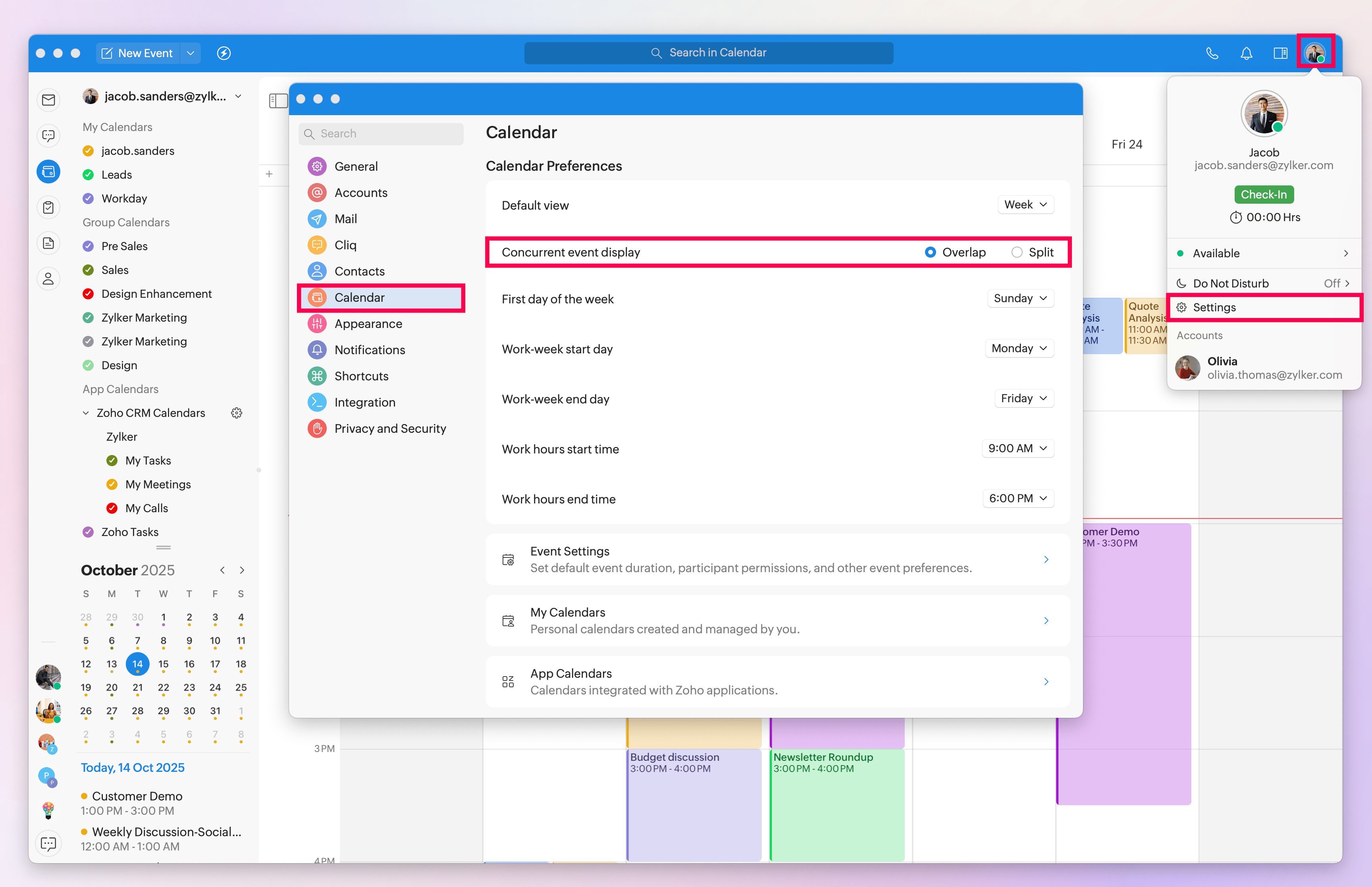 Toggle on the Zoho CRM Calendars option.